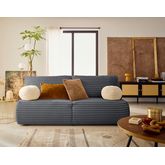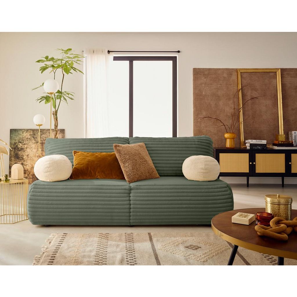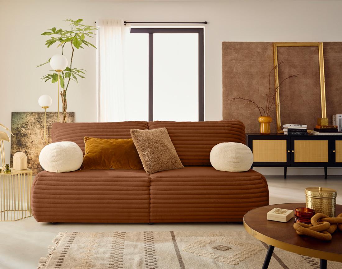 Présentation de la collection : Le canapé Marvin 3 places convertible en fausse fourrure côtelé dispose d'un dossier rabattable, d'un coffre de rangement pratique et d'un design épuré, idéal pour optimiser les espaces réduits avec style
