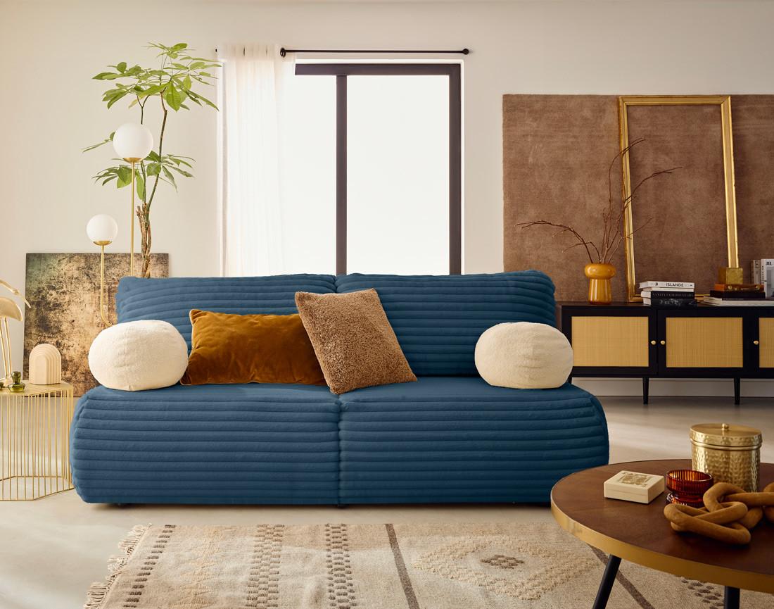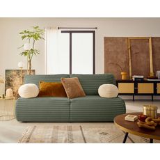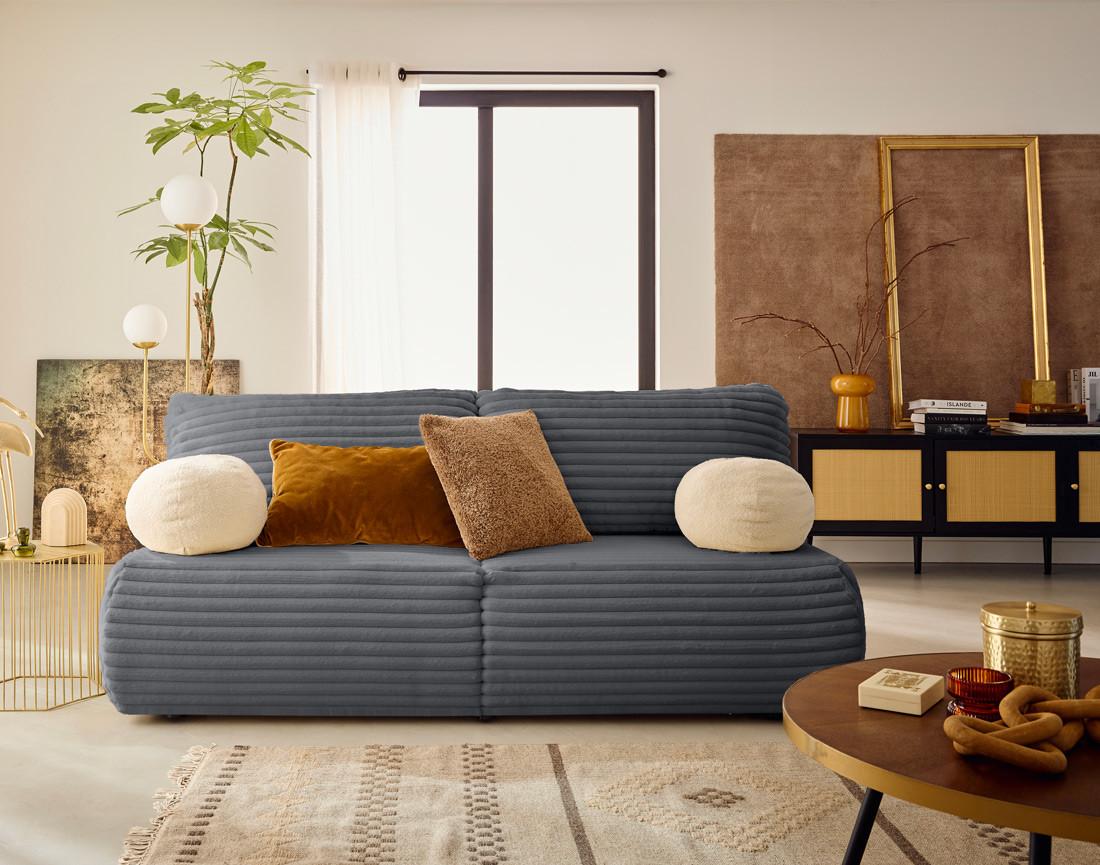Marvin - canapé 3 places convertible et coffre en fausse fourrure côtelée avec 2 coussins boule inclus