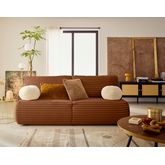 Le canapé Marvin séduit par son design et son toucher agréable, tant par la fausse fourrure côtelée de son assise, que par ses coussins boules en tissu bouclette. Que vous optiez pour un intérieur chaleureux et intemporel ou un style plus audacieux, Marvin s'impose comme un élément de décoration à la fois tendance et élégant. Fabriqué en Europe, il représente le combo parfait entre confort et qualité.