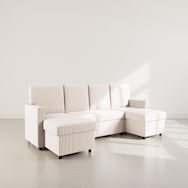 Le Meiya ne se contente pas d'être élégant : il est aussi hautement fonctionnel. En quelques secondes, il se transforme en lit d'appoint, idéal pour recevoir sans contrainte. Ses deux coffres spacieux permettent de ranger plaids, coussins ou linge de lit en toute discrétion. Avec son format généreux, son velours côtelé accueillant et ses fonctionnalités intelligentes, le Meiya combine parfaitement style, confort et praticité pour un salon chaleureux et organisé.