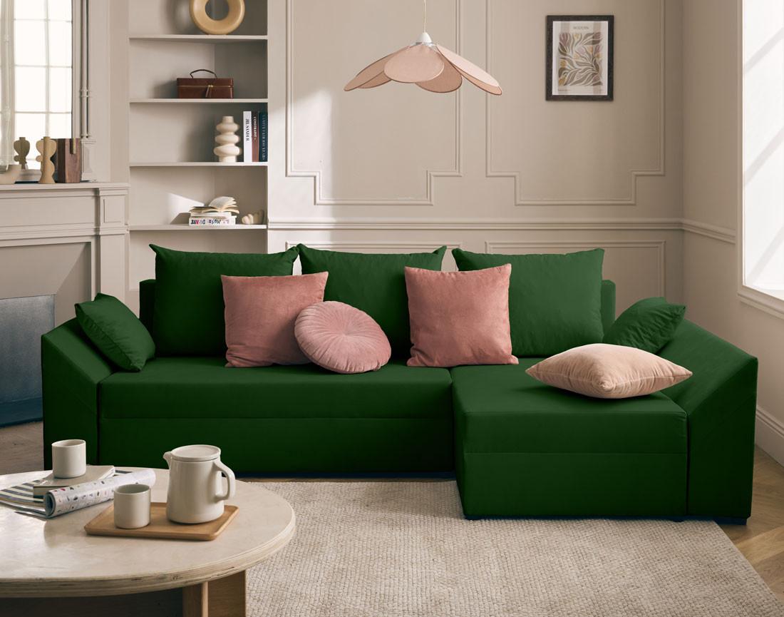 Mike - canapé d'angle réversible - 4 places - convertible avec coffre - en velours