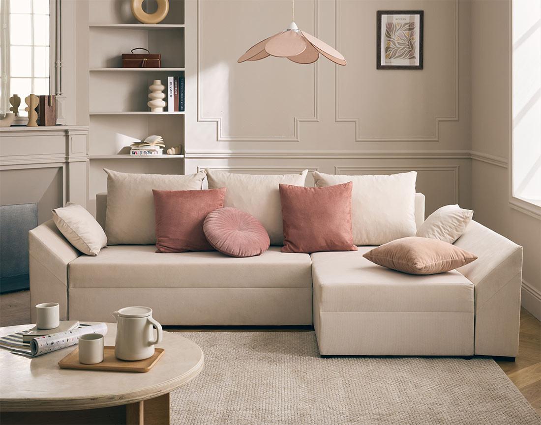 Si le canapé Mike vous séduira par ses lignes modernes et tendances, vous allez également apprécier ses fonctions pratiques. Doté d'une fonction convertible et d'un coffre de rangement situé sous son assise, le canapé Mike sera très utile au quotidien pour vous prélasser et pour y ranger vos plaids et coussins. De plus, ce canapé a l'avantage de s'adapter à la disposition de votre intérieur grâce à son angle réversible qui vous permet d'intervertir la méridienne à droite ou à gauche très facilement.