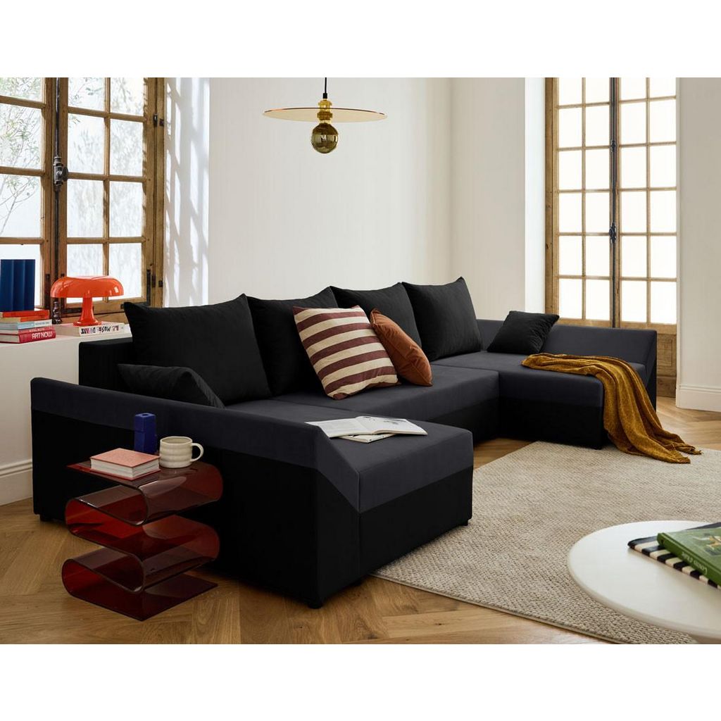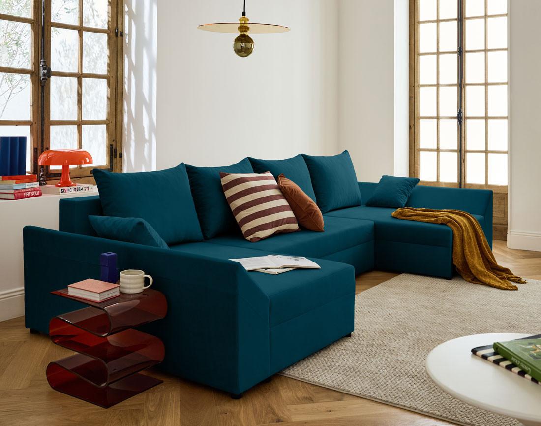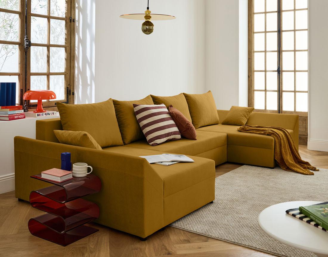Mike - canapé panoramique en u - 7 places - convertible - avec coffre - en velours