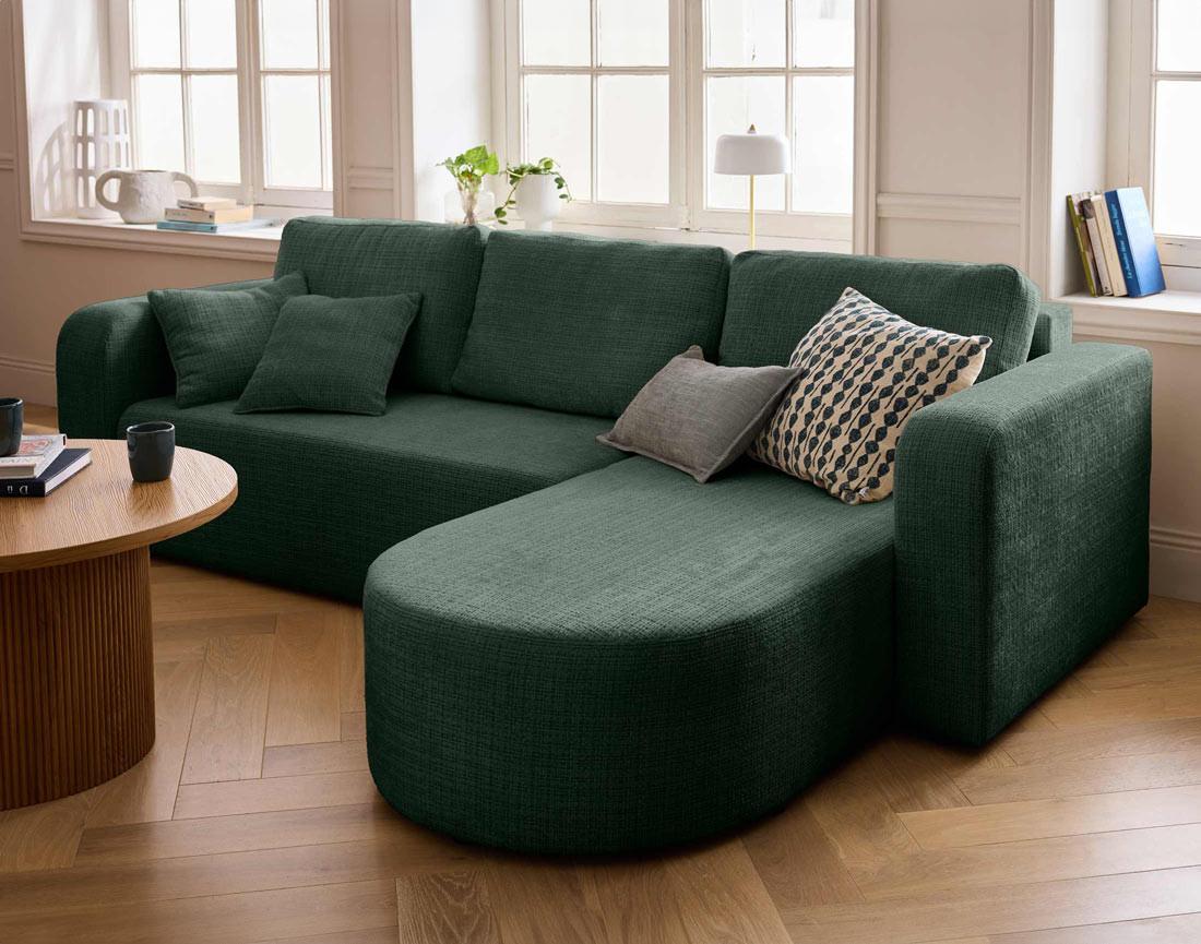 - Présentation de la collection : Vraie pièce maitresse de votre salon, vous allez adorer le canapé d'angle Miro pour sa méridienne arrondie très tendance, son revêtement en velours texturé et ses nombreuses fonctionnalités.