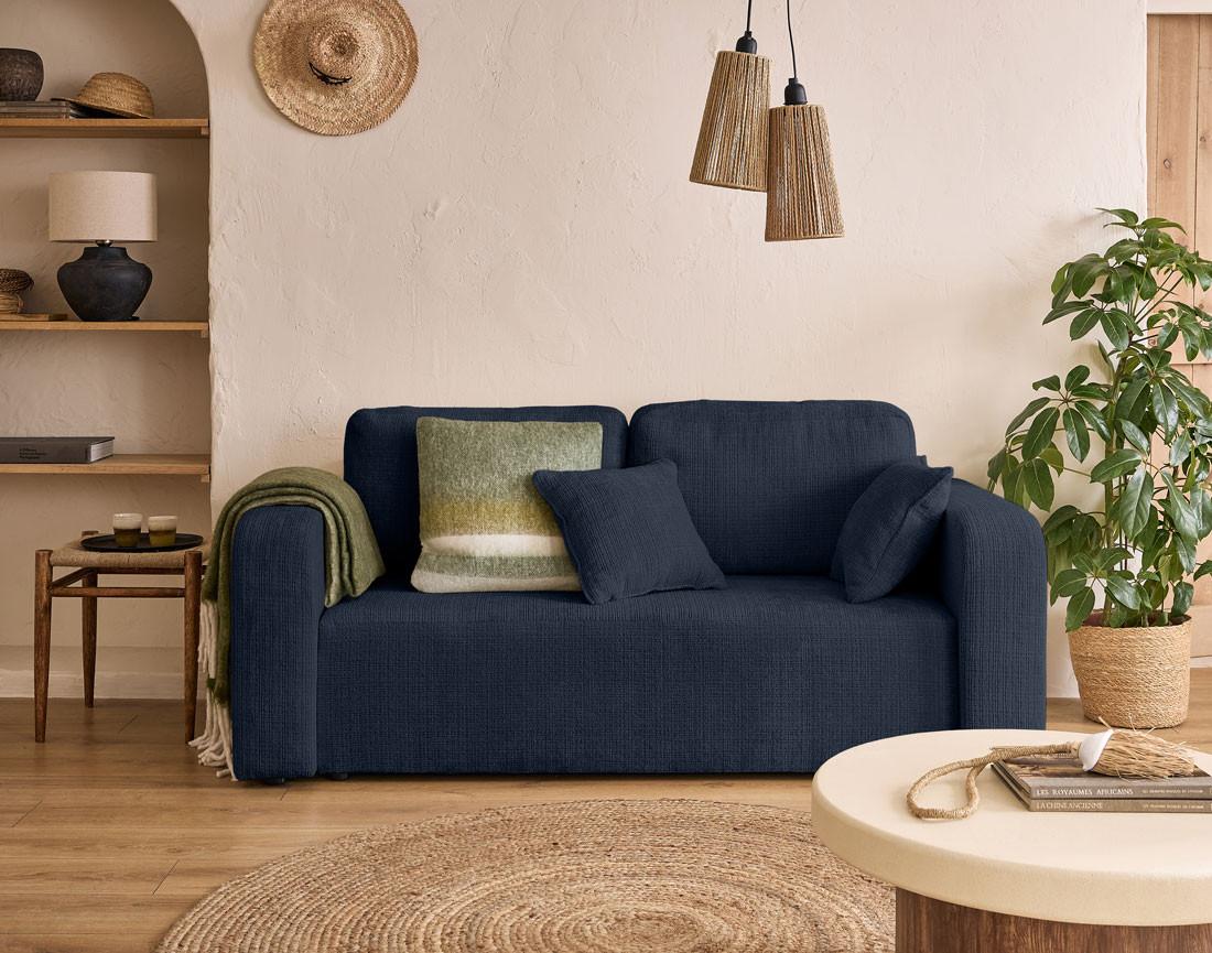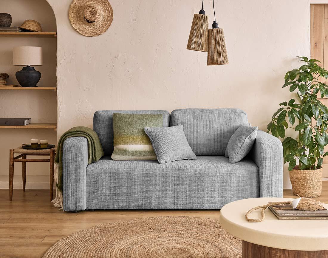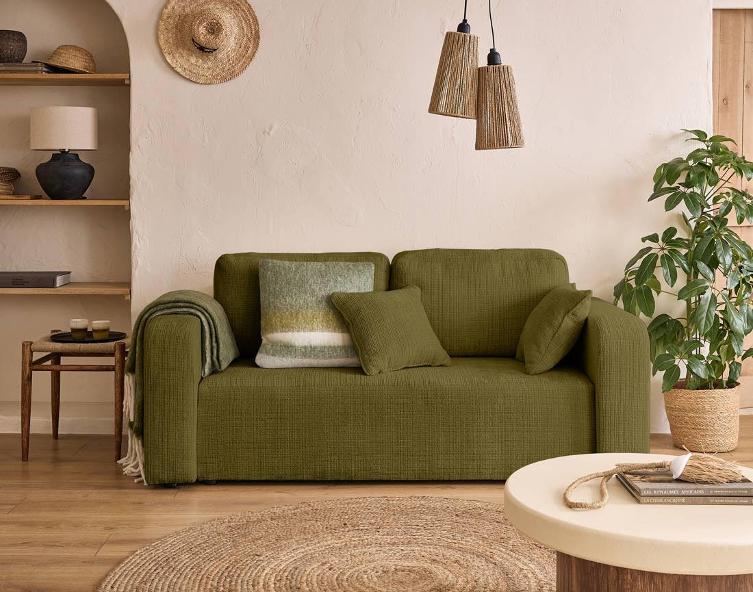 Disponible en plusieurs coloris tendance comme le beige, le bleu, le vert, le prune, le gris, le gris anthracite, le vert olive et le vert sauge, le canapé Miro 2 places s'adaptera facilement à votre décoration existante. Que vous souhaitiez une ambiance sobre et élégante ou un espace vibrant de couleurs, ce canapé saura s'intégrer à votre intérieur tout en apportant une touche de modernité. Non convertible (contrairement à la version 3 place de la même collection), ce modèle se concentre sur l'essentiel : il vous offre une assise confortable sans compromis sur le style.