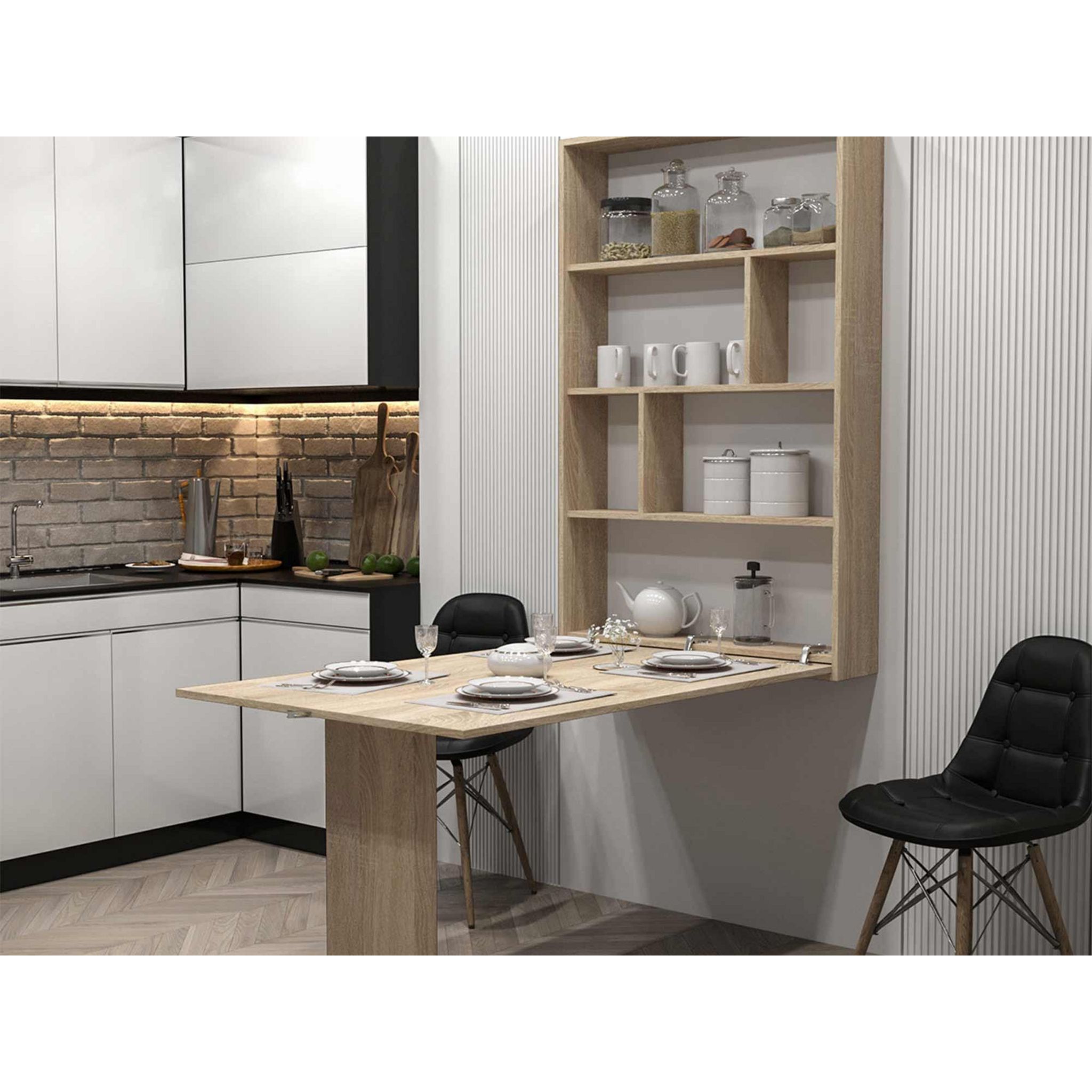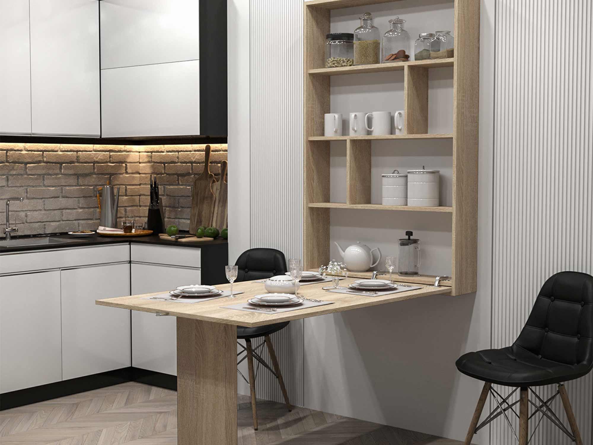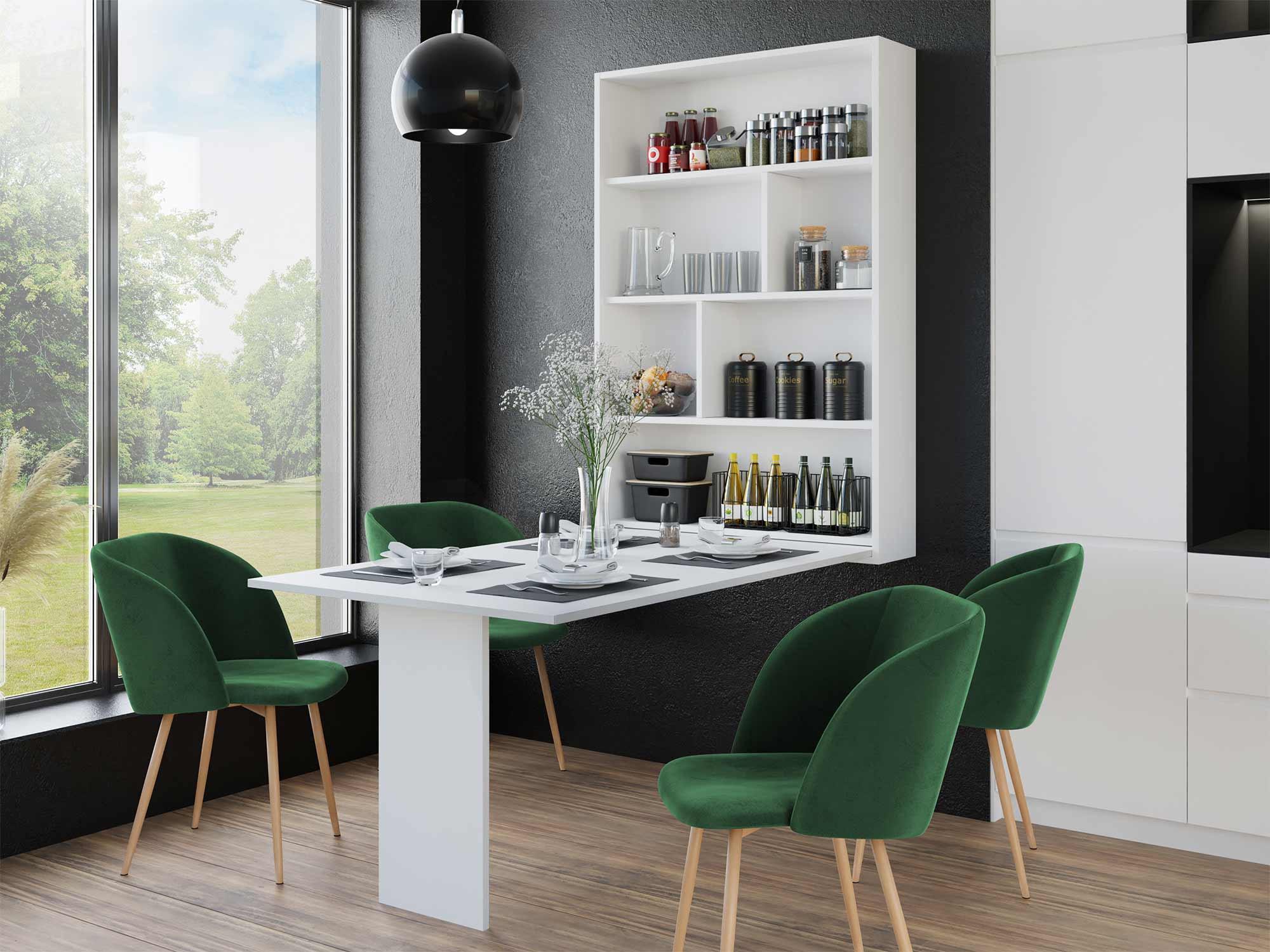 Mondrian - table murale rabattable avec rangements - 4 personnes