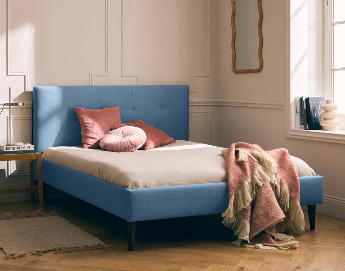 Préparez-vous pour une belle nuit de sommeil avec le lit Monet 160x200 cm. Avec sa tête de lit capitonnée, ses pieds en bois noyer et son revêtement en tissu, ce lit est aussi élégant que douillet. De plus, il est fourni avec un sommier à lattes. Disponible dans différents coloris ainsi qu'en 140x190 cm, ce lit moderne s'intégrera parfaitement à votre intérieur.