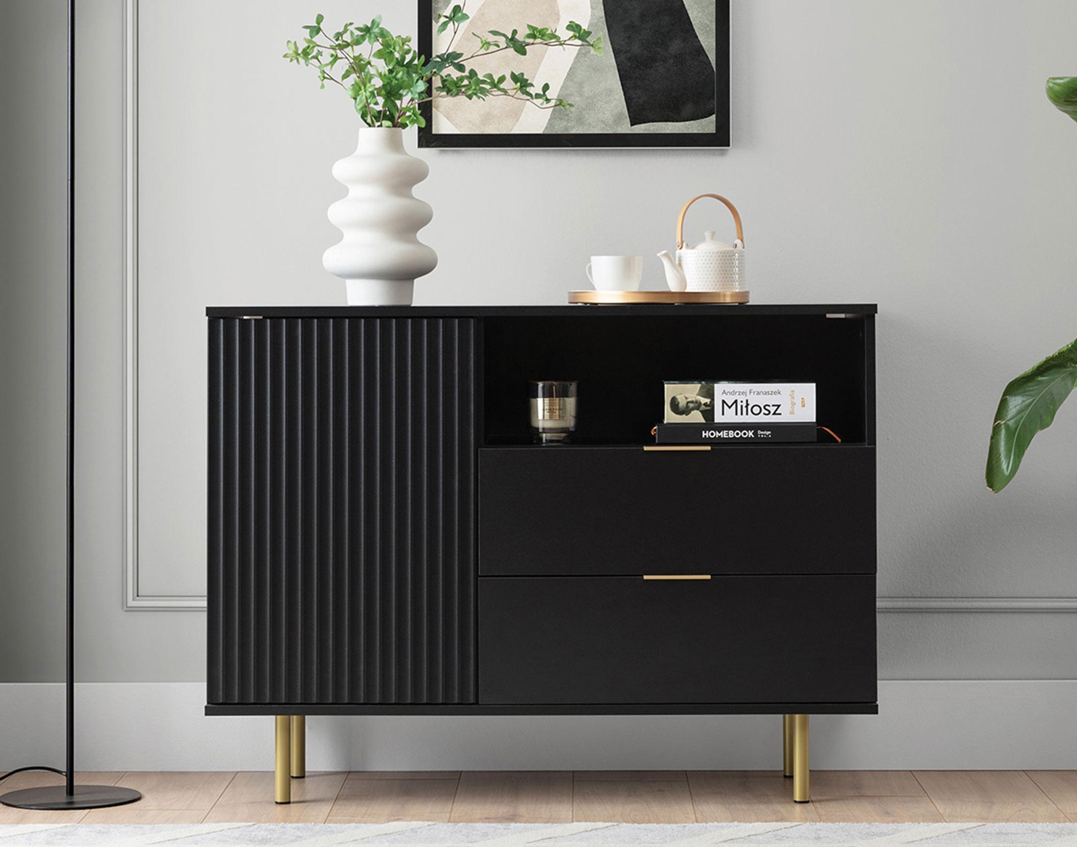 Monica - buffet - noir - 2 tiroirs, 1 porte et 1 niche - 107 cm
