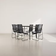 - Présentation de la collection : La collection Murillo allie élégance et praticité avec un salon pour 6 personnes, une table en verre trempé et des fauteuils légers et robustes pour l'extérieur