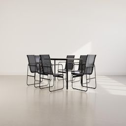 Murillo - ensemble table et chaises de jardin - 6 personnes - noir et gris