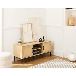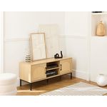 Nagato - meuble tv - cannage et effet bois - 2 portes et 2 niches - 120 cm