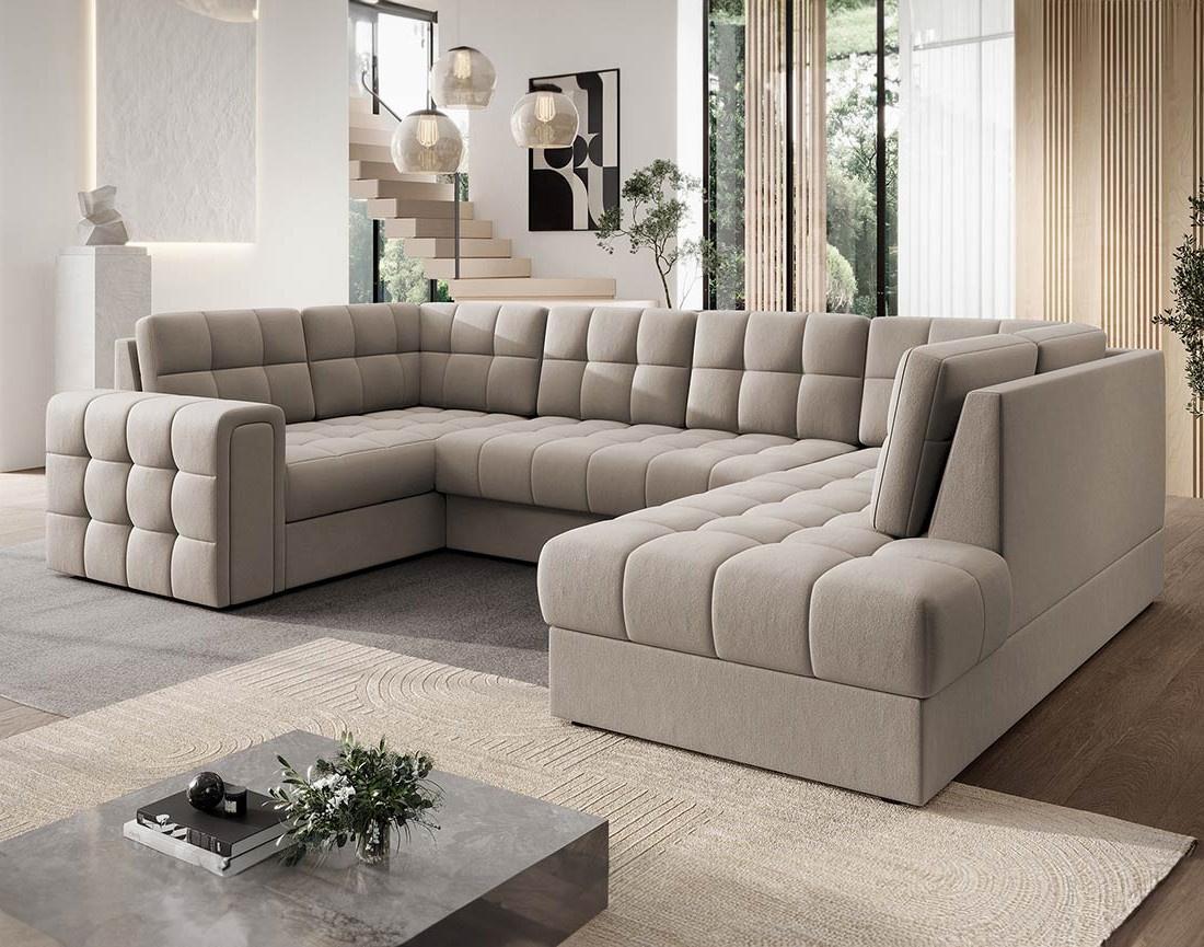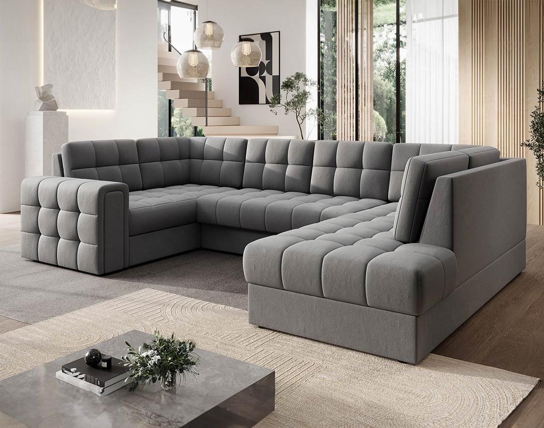 Nappa - canapé panoramique d'angle gauche 7 places convertible avec coffre en velours