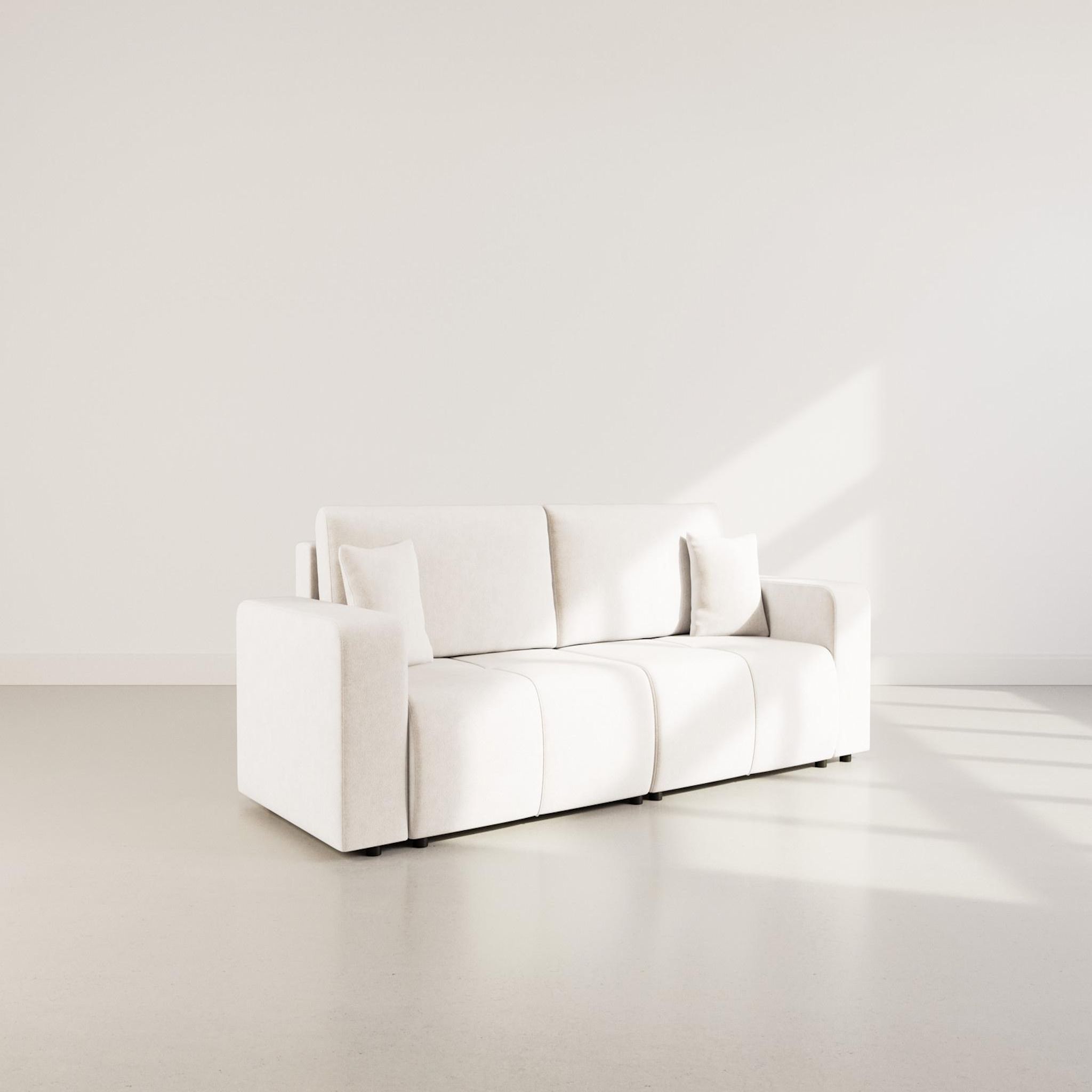Pratique sans jamais compromettre le style, Nicole est aussi un vrai champion de la fonctionnalité. Son couchage d'appoint intégré s'installe en un clin d'œil pour accueillir vos invités à l'improviste. Et grâce à son coffre de rangement discret, plaids et oreillers trouvent leur place sans encombrer l'espace. Compact mais ultra malin, ce canapé a tout d'un grand. Nicole, c'est le confort du quotidien, pensé intelligemment et porté par un savoir-faire européen.