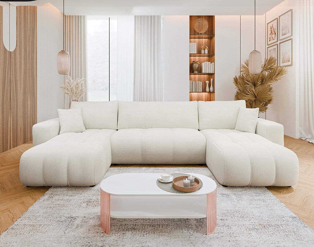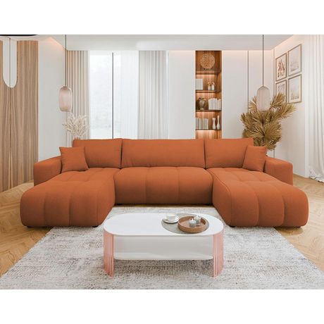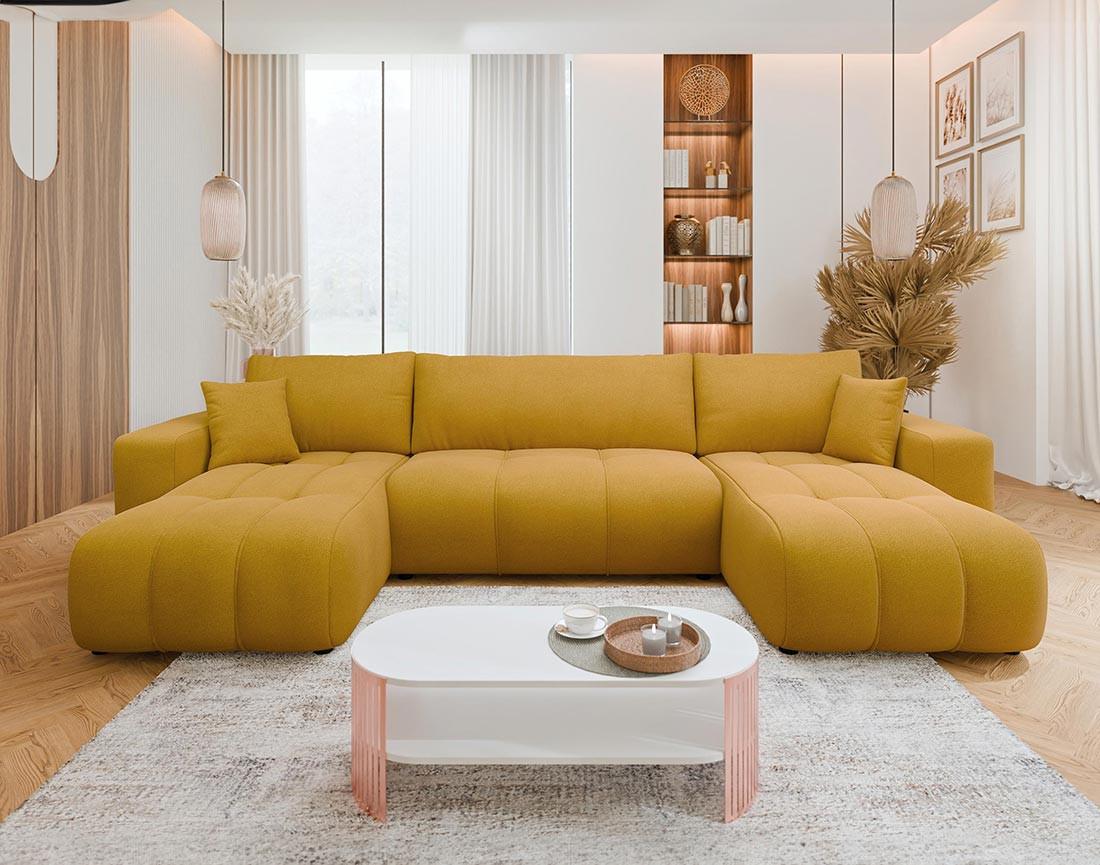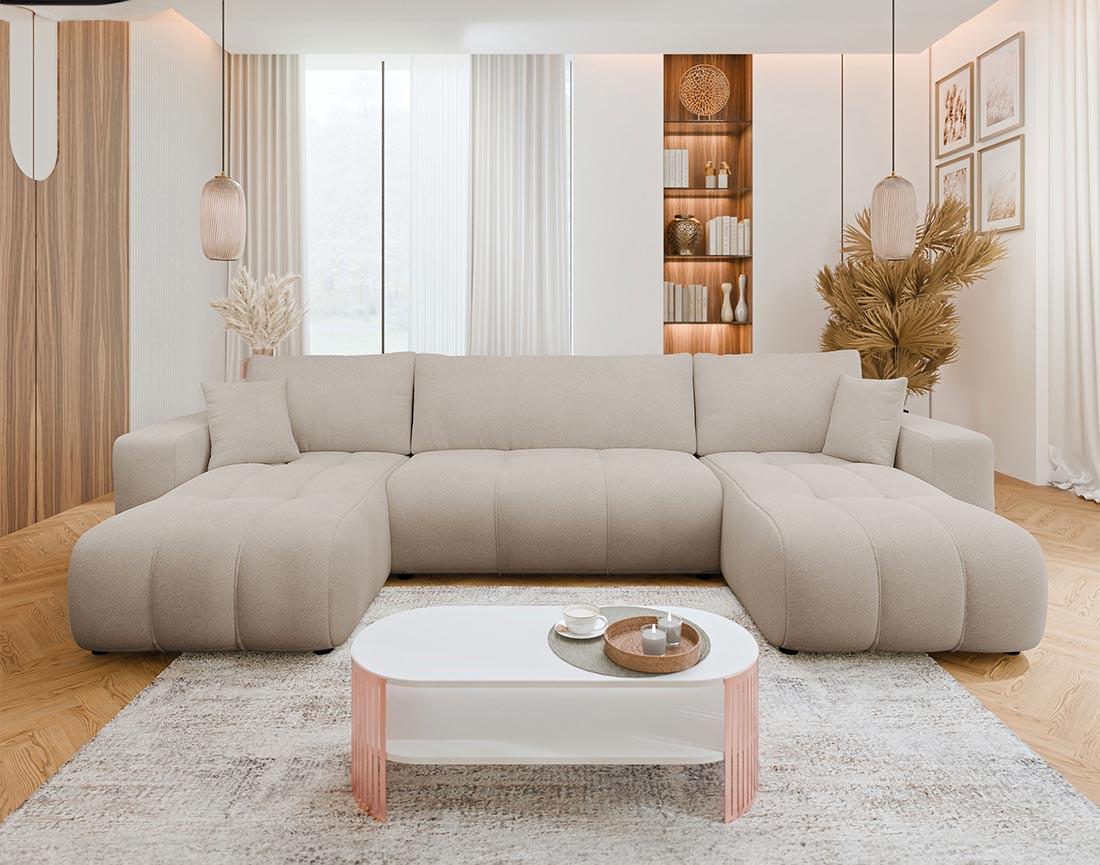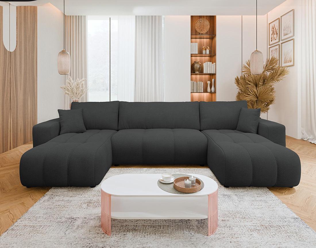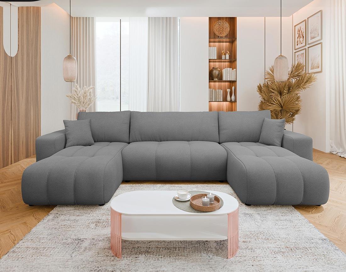 Nicole - canapé panoramique en u 7 places convertible avec coffre en tissu