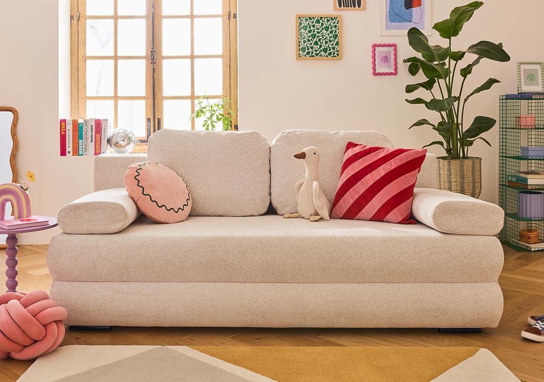 Le canapé Nora a toutes les qualités : il est pratique, élégant et confortable. Idéal pour les petits espaces grâce à son design compact, il combine fonctionnalité et esthétique pour optimiser votre intérieur. Il est moderne avec son tissu texturé très doux au toucher. Et très facile à entretenir. Parce qu'on adore se lover dans son assise durant des heures, mais on aime moins rencontrer des difficultés pour le nettoyer. Ce revêtement est disponible en une large palette de couleurs : lequel vous fera craquer entre le terracotta, vert, bleu, gris foncé et beige ? Ce sont des teintes neutres, qui s'adaptent idéalement avec votre décoration intérieure. Grâce à son dossier rabattable, ce canapé se transforme en un lit d'appoint confortable en quelques secondes. Avec des dimensions de couchage de 190 x 144 cm, il est parfait pour accueillir des invités ou pour une sieste improvisée. Compact, Nora est la solution idéale pour tous types d'intérieurs.