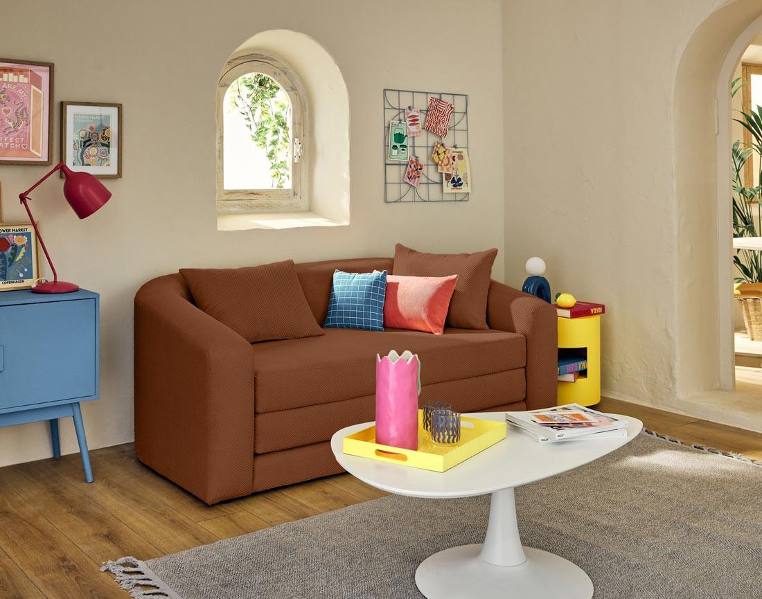 - Présentation de la collection : Découvrez Nuvia, des canapés convertibles au design arrondi tendance, en velours texturé doux, parfaits pour recevoir ou pour une chambre d'enfant, avec un système déplimousse pratique et une fabrication européenne de qualité