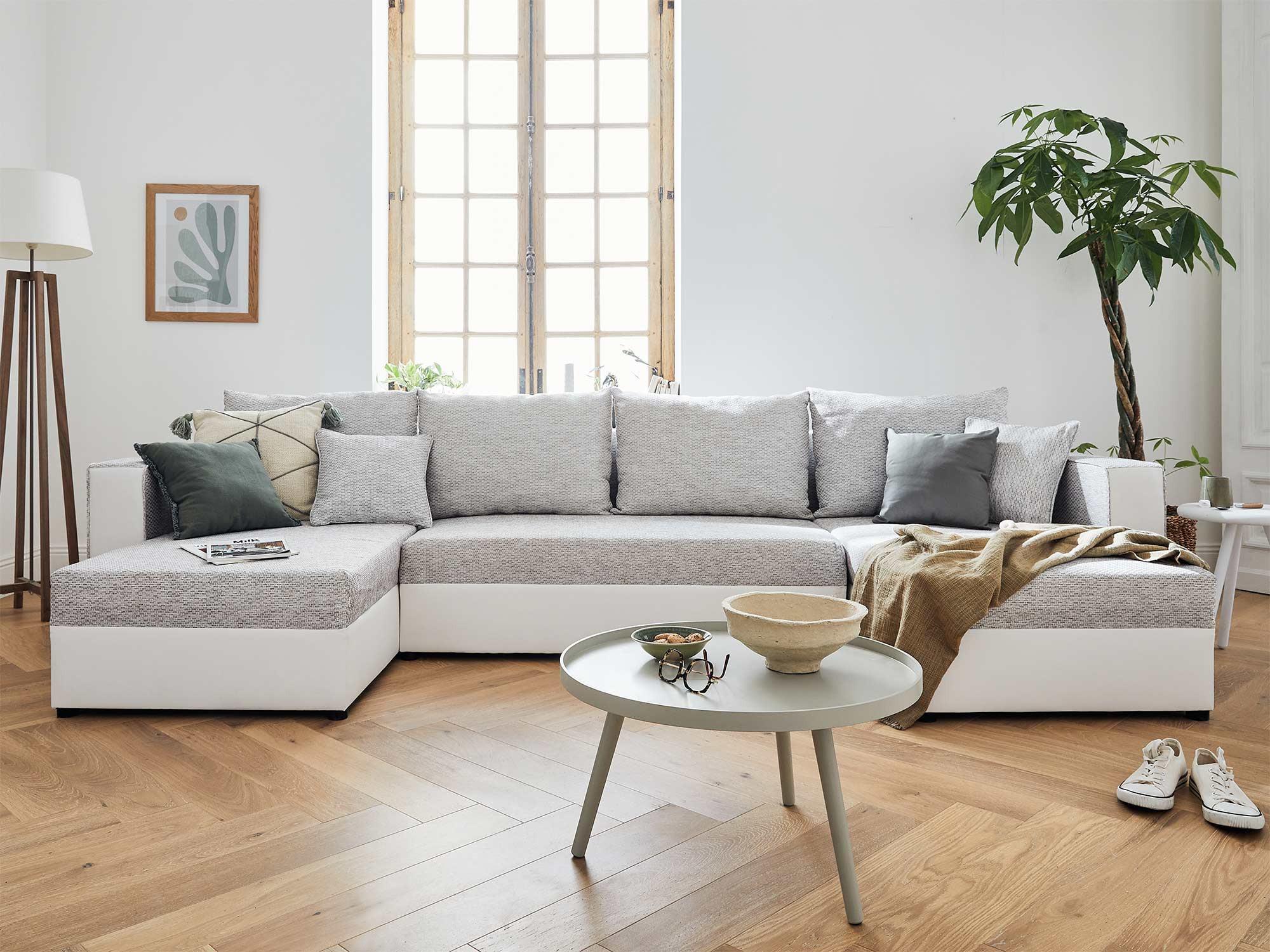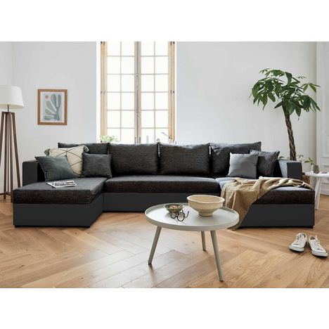 Opale - canapé panoramique en u - 7 places - convertible - avec coffre - en tissu et simili