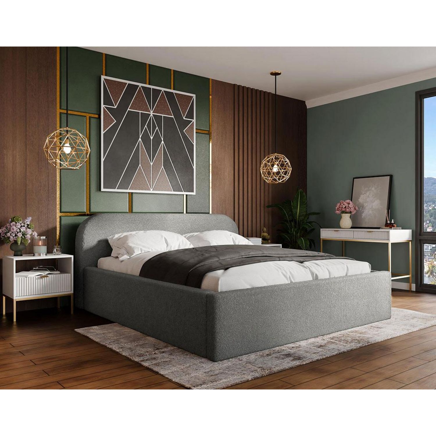 Habillé d'un tissu bouclette aussi doux qu'élégant, le lit Orane séduit par son aspect cocooning et résolument moderne. Cette matière tendance sublime la structure du lit tout en apportant une vraie sensation de confort au quotidien. Conçu en Europe, ce modèle allie savoir-faire et durabilité, pour une pièce à la fois esthétique et fiable.