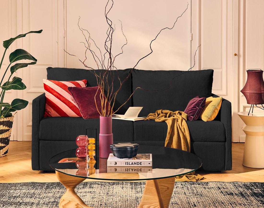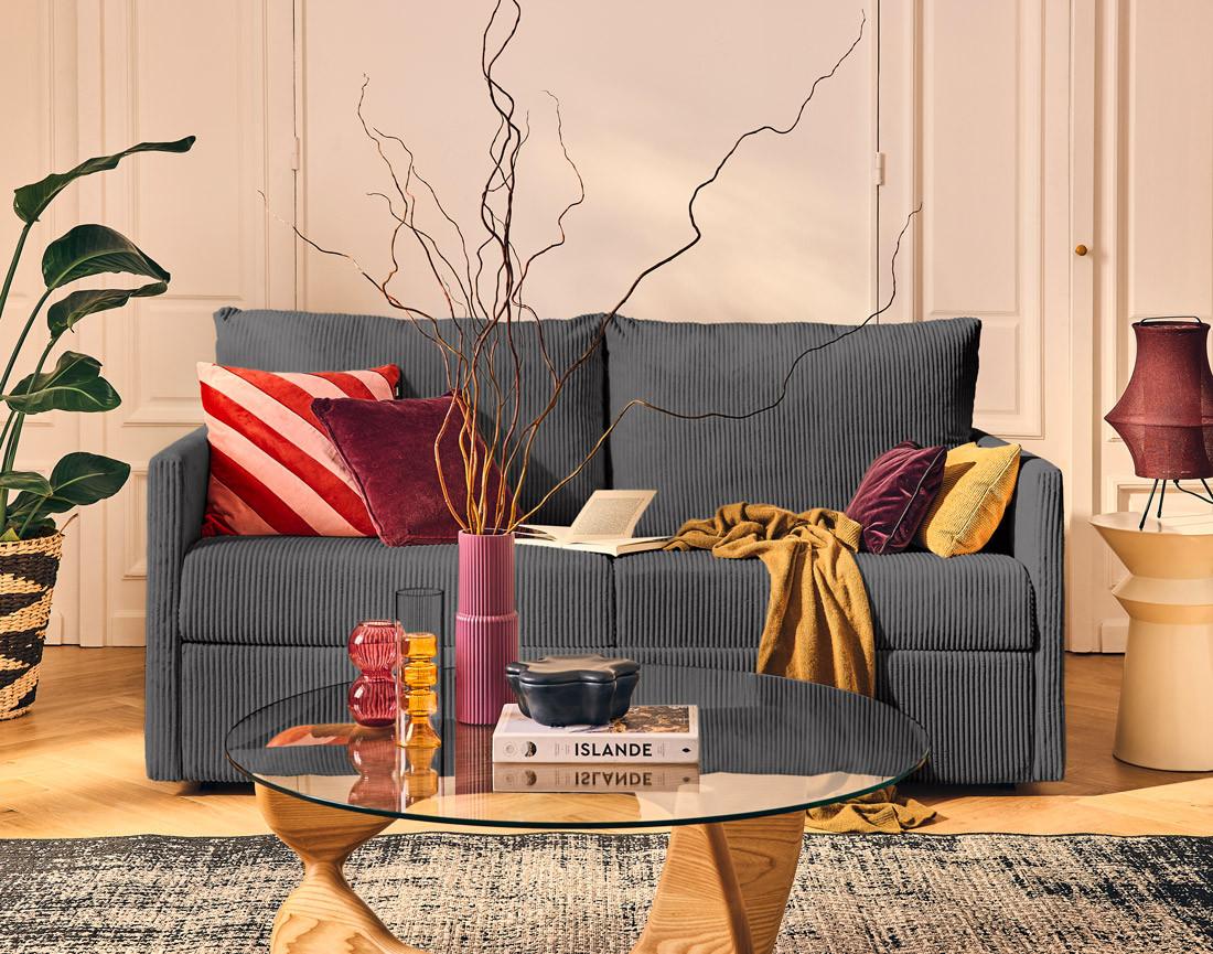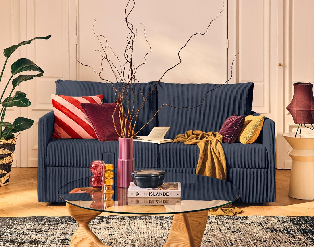 - Présentation de la collection : Découvrez le confort au quotidien avec le canapé Ottawa : un 3 places convertible en velours côtelé, chic et pratique pour vos nuits.