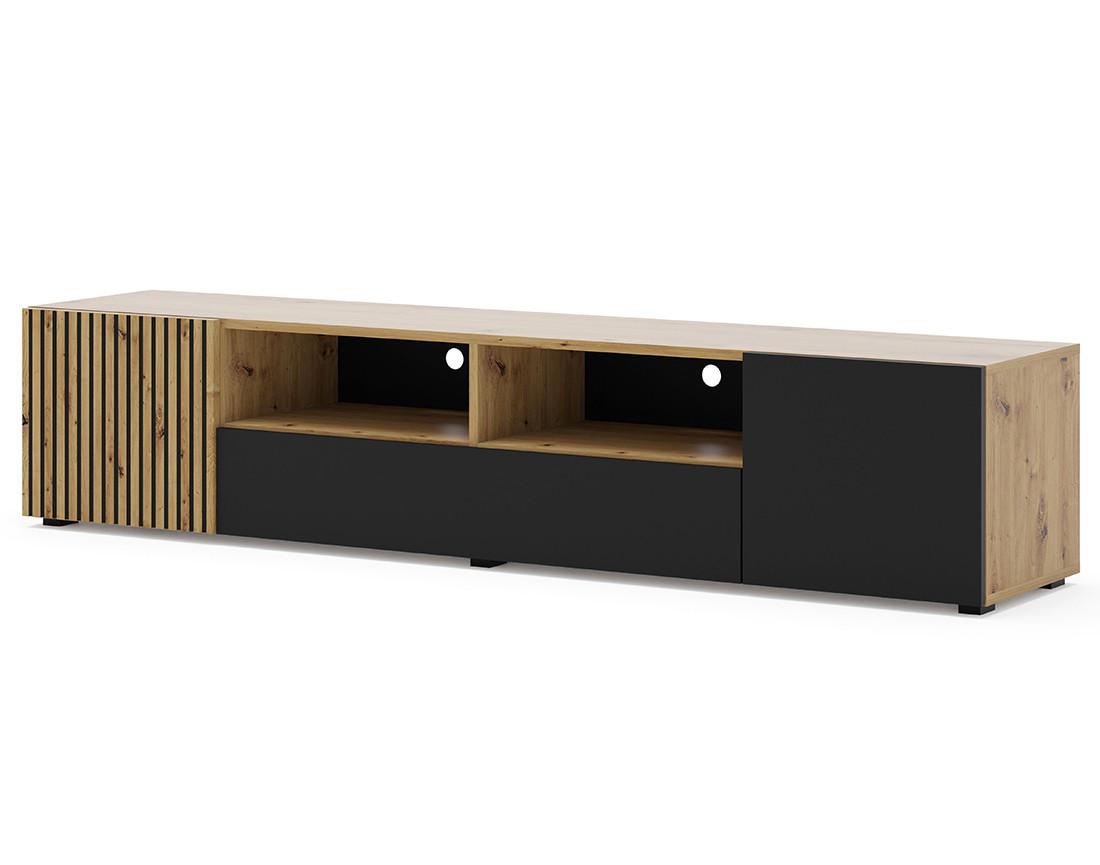 Ozzy - meuble tv - effet bois et noir - 200 cm