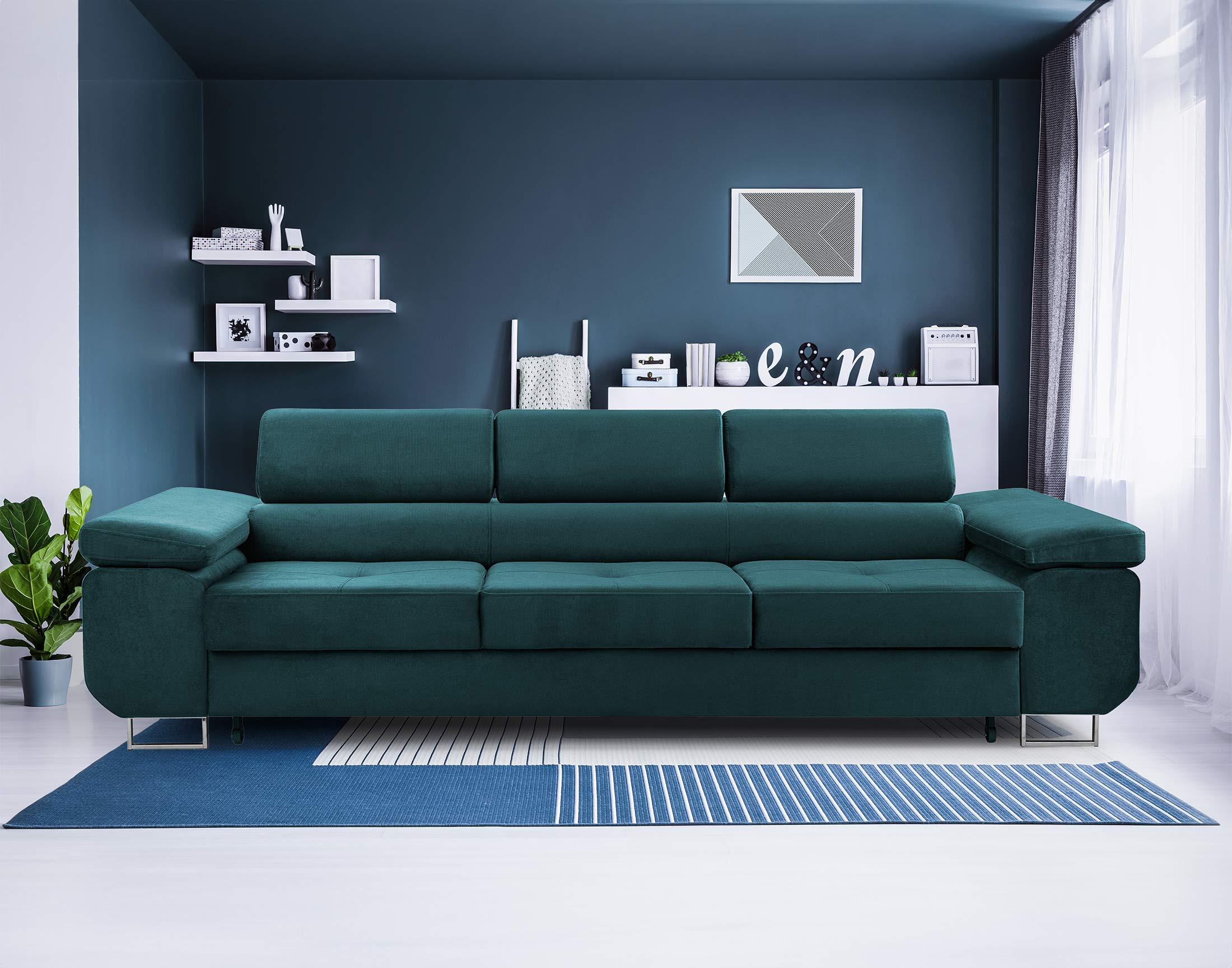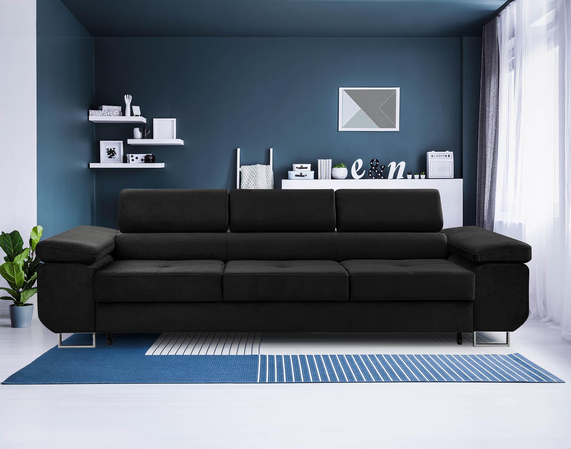 Pablo - canapé 3 places - convertible avec têtières réglables - en velours