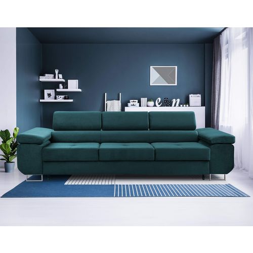 Le canapé 3 places convertible Pablo accentuera le côté moderne et contemporain de votre intérieur. Ses lignes tendances et design, son revêtement en velours et ses pieds en métal chromé apporteront du caractère à votre pièce de vie. Ses 3 places assises vous permettront de recevoir votre famille et vos amis pour passer d'agréables moments de convivialité. Ce canapé vous propose également des appuie-têtes réglables que vous pouvez ajuster afin de mieux vous relaxer.