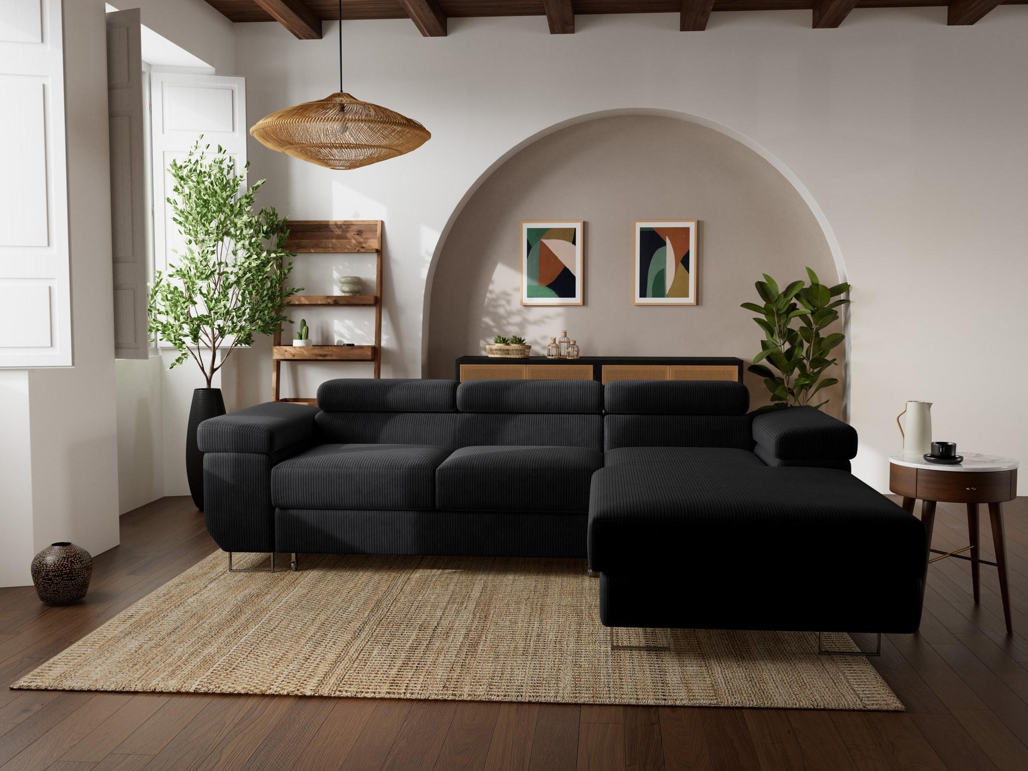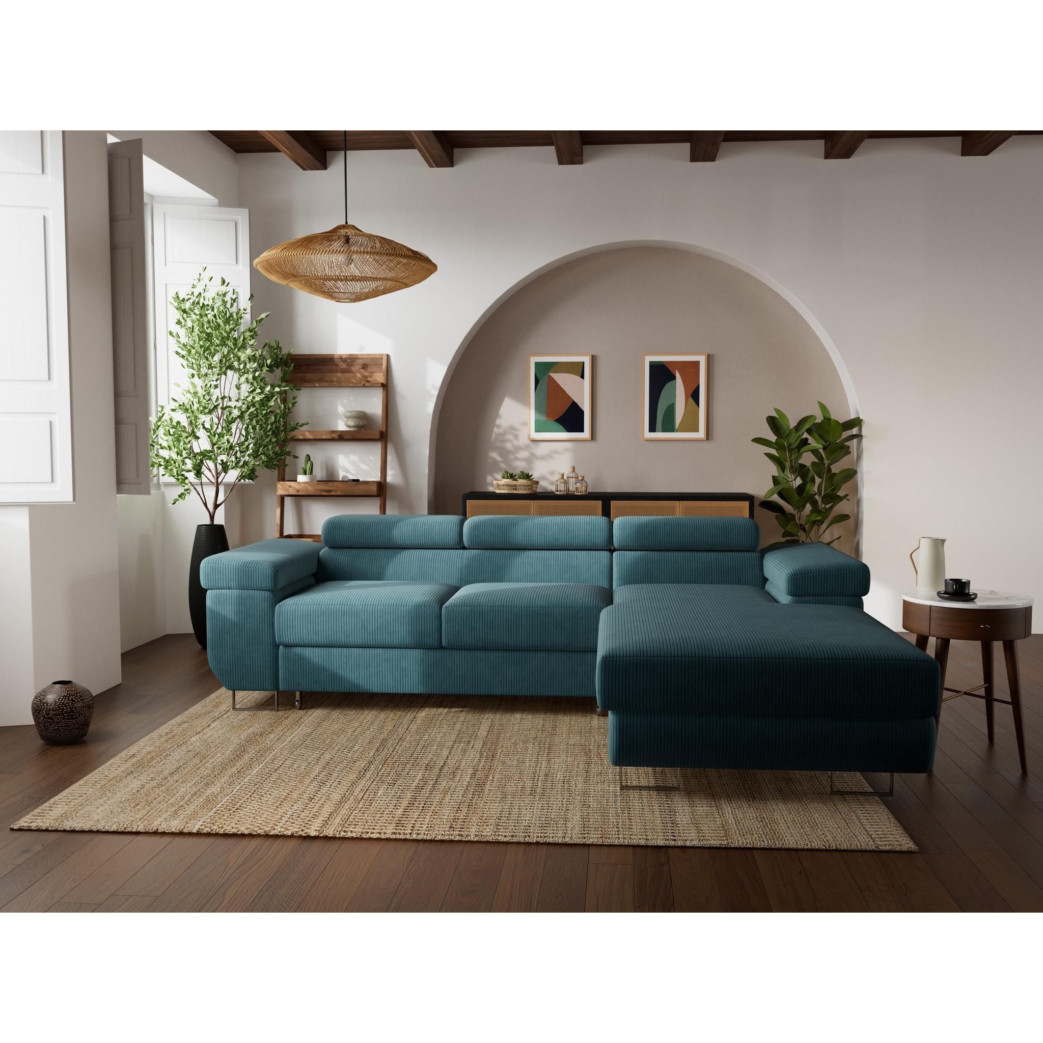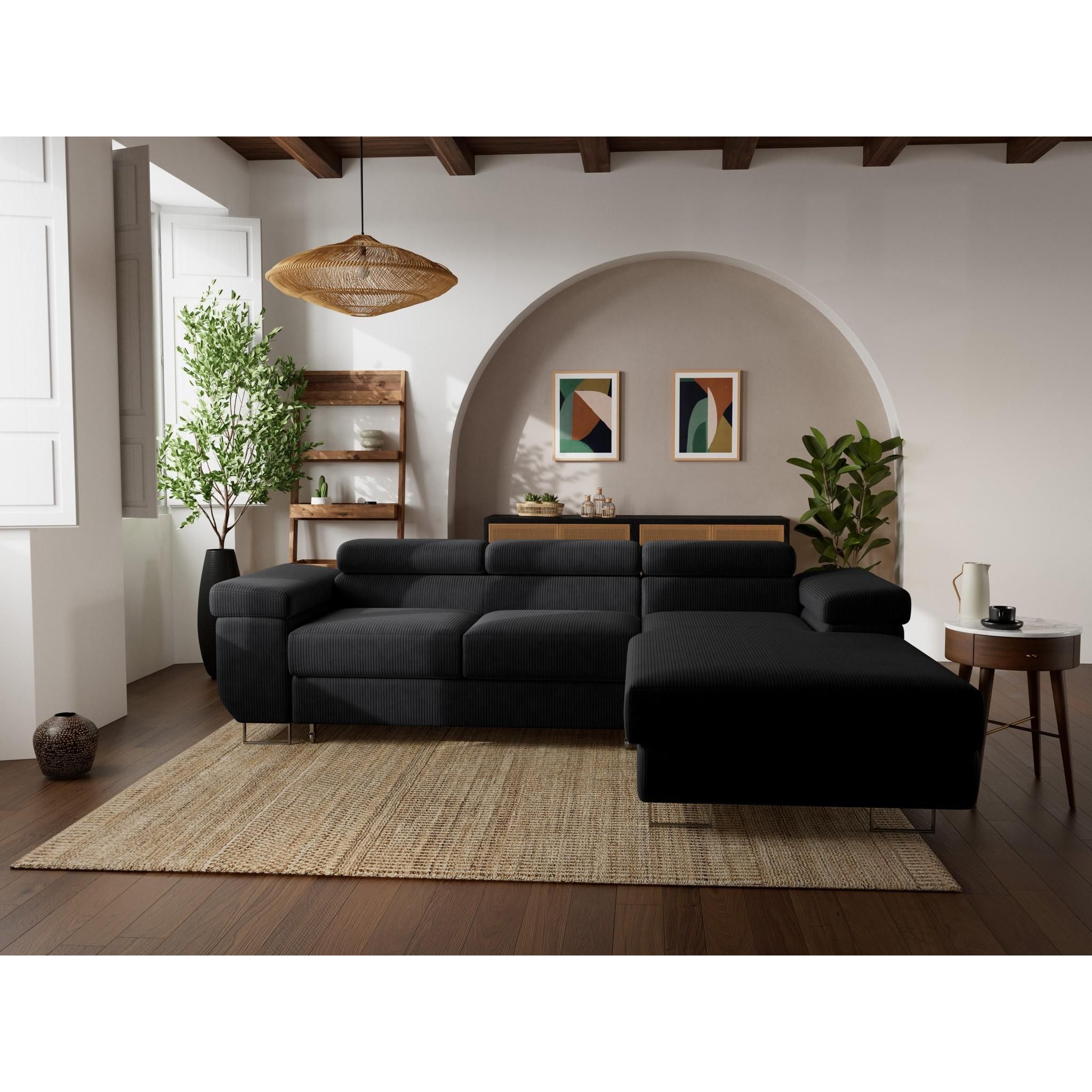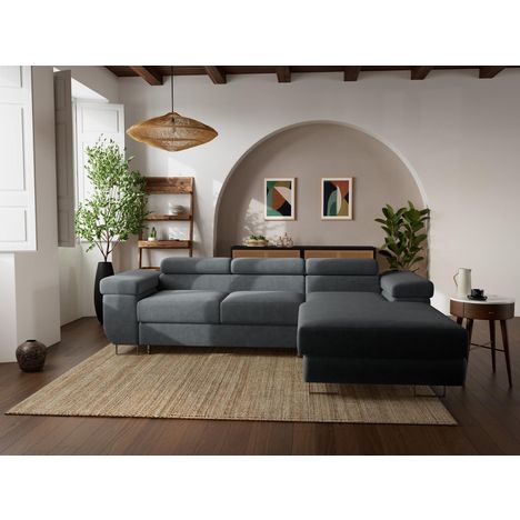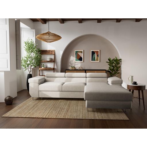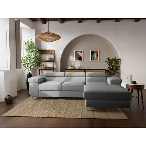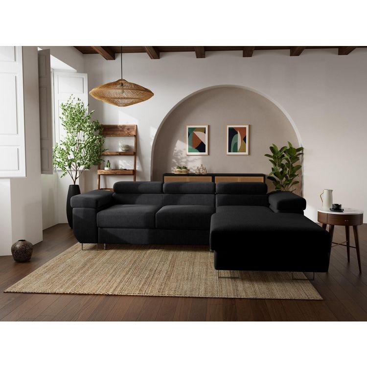 Pablo - canapé d'angle droit - 6 places - convertible avec coffre et têtières réglables - en velours côtelé