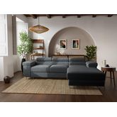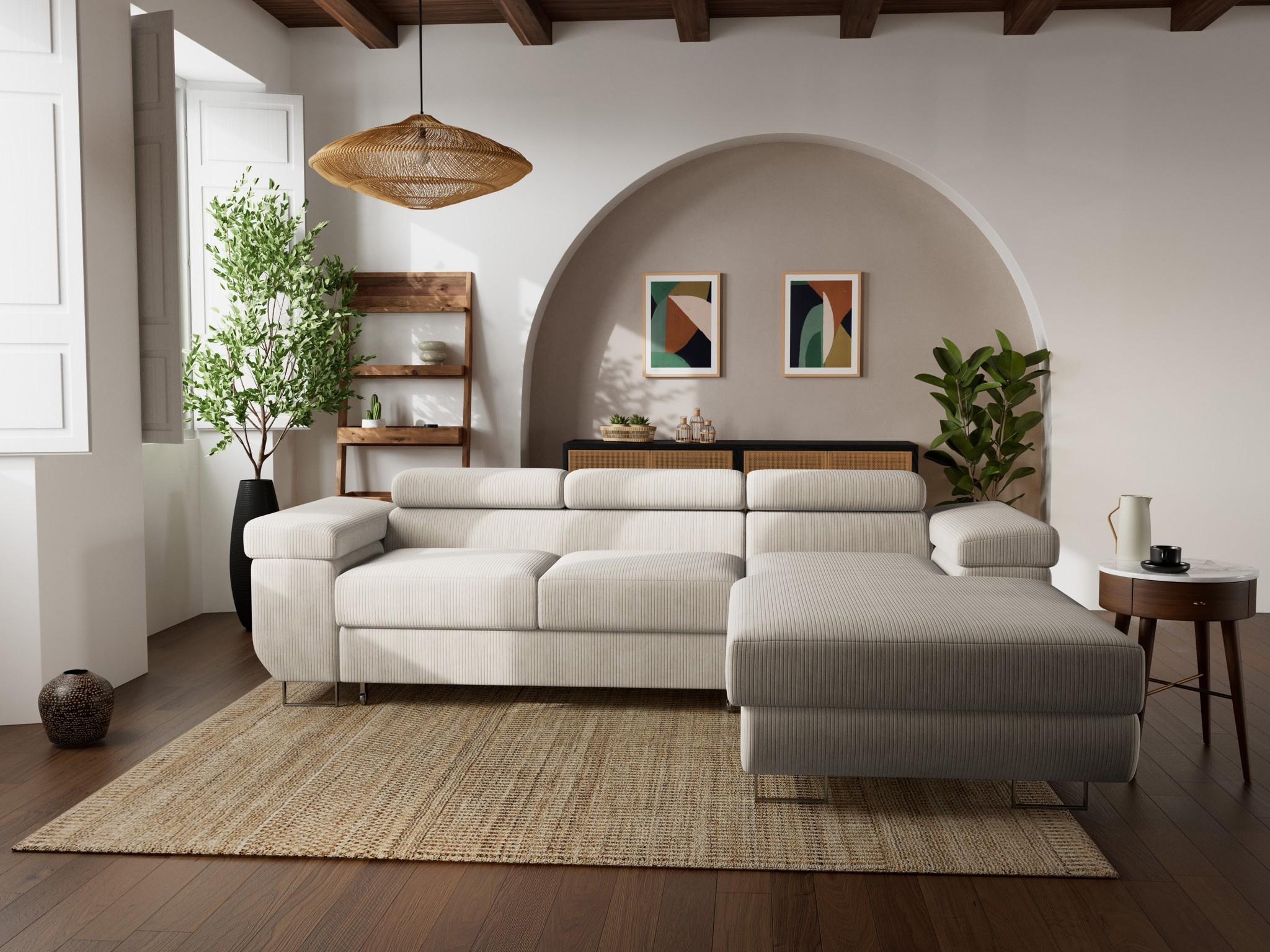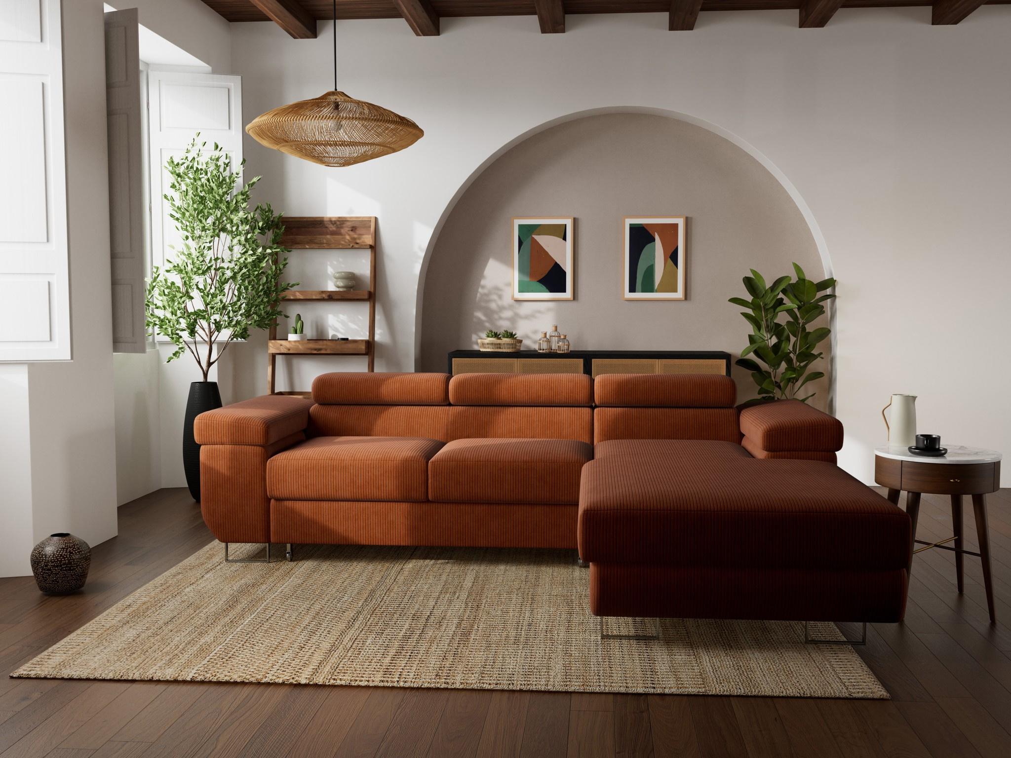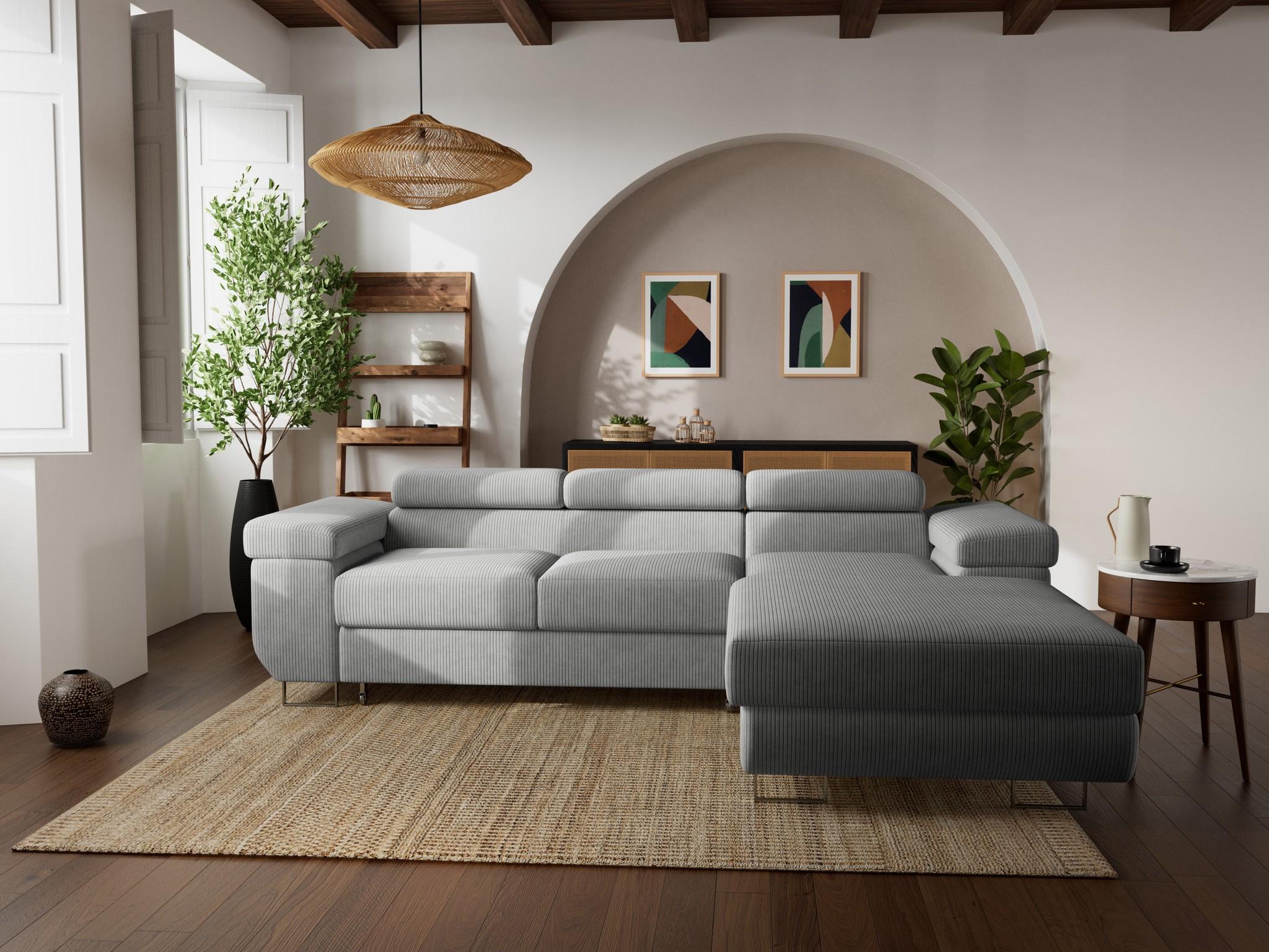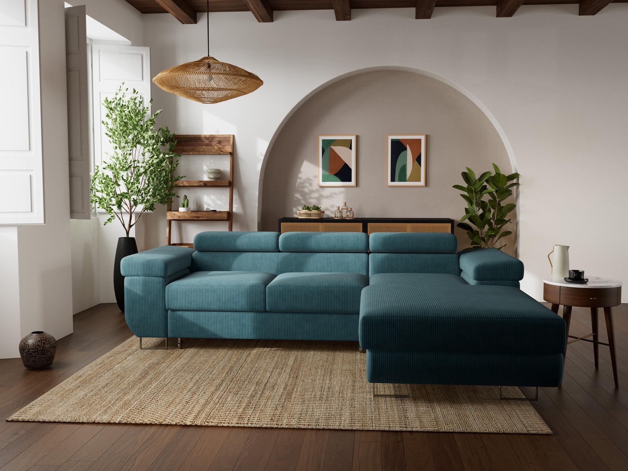 Pablo - canapé d'angle droit - 6 places - convertible avec coffre et têtières réglables - en velours côtelé