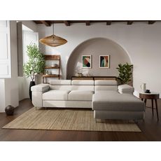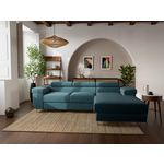 Le canapé d'angle Pablo est à la fois esthétique et pratique. En effet, ce canapé vous propose des appuie-têtes réglables que vous pouvez ajuster afin de mieux vous relaxer. De plus, étant convertible, il peut être déplié pour obtenir une large surface de couchage de 193x125cm pouvant accueillir deux personnes, idéale pour un usage occasionnel. Enfin, le coffre de rangement situé sous sa méridienne vous permettra de stocker aisément vos plaids et coussins.