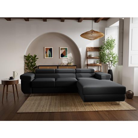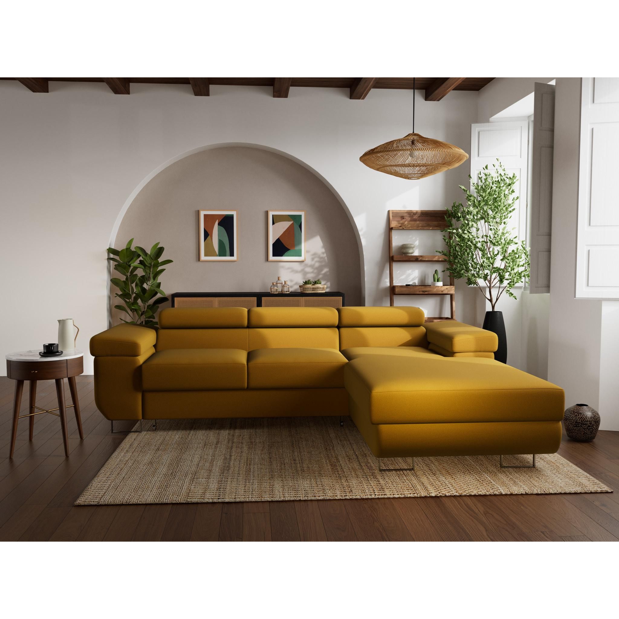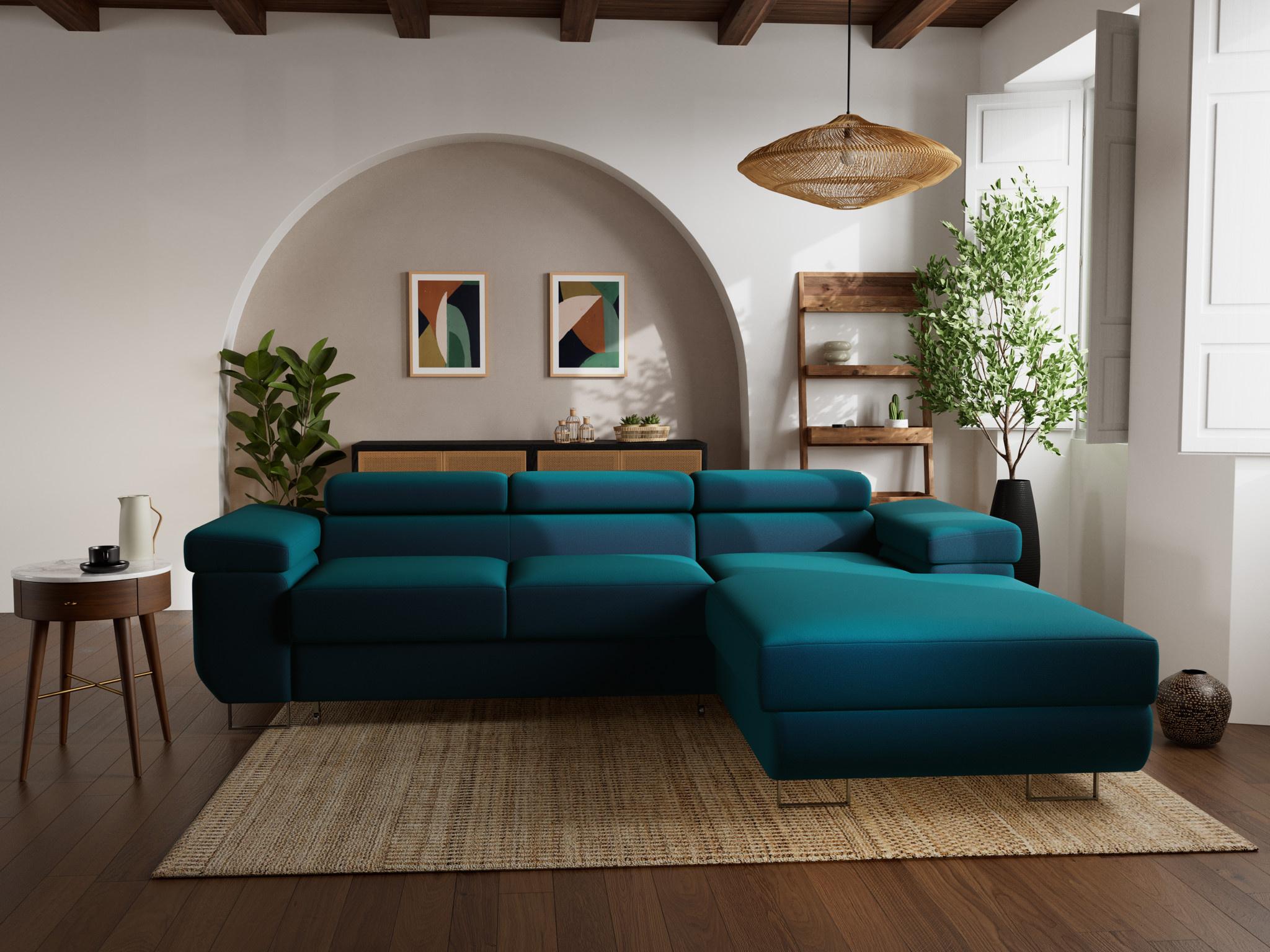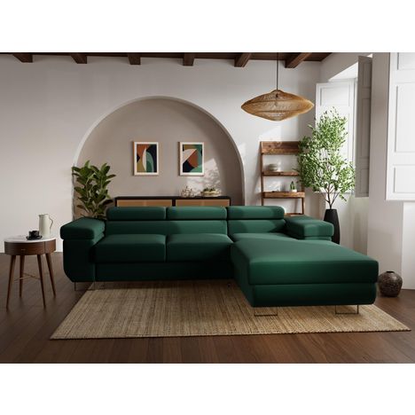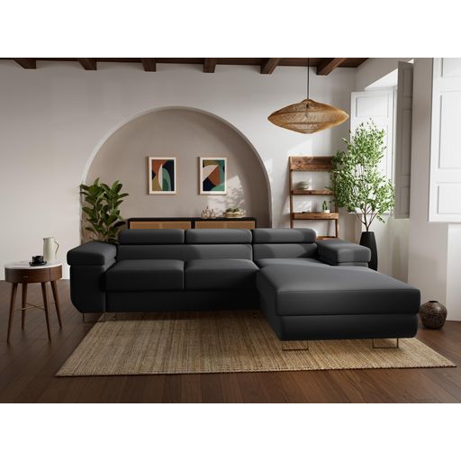 Pablo - canapé d'angle droit - 6 places - convertible avec coffre et têtières réglables - en velours