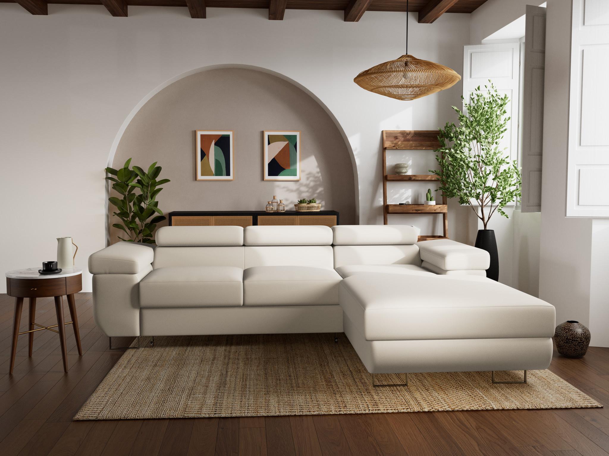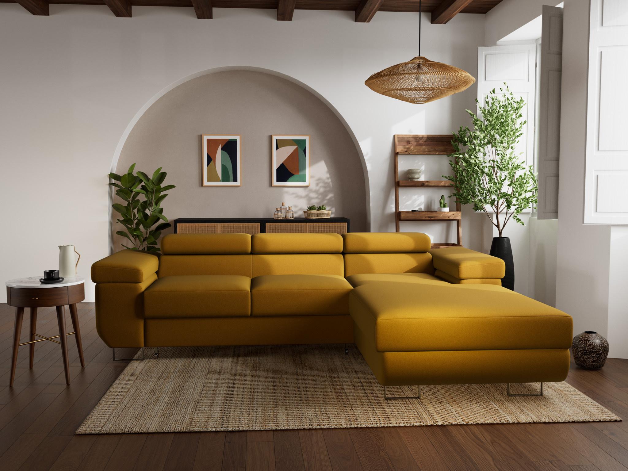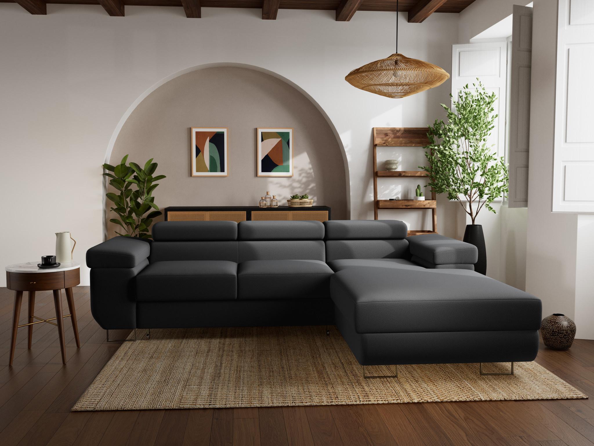 Pablo - canapé d'angle droit - 6 places - convertible avec coffre et têtières réglables - en velours