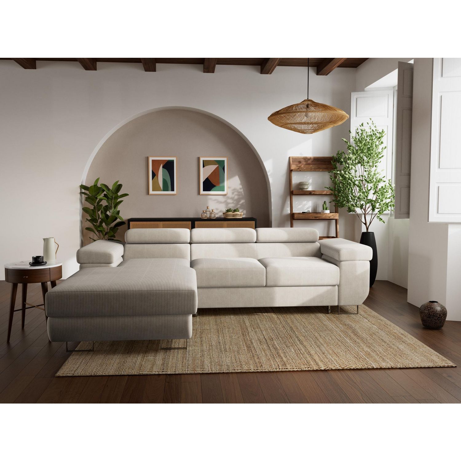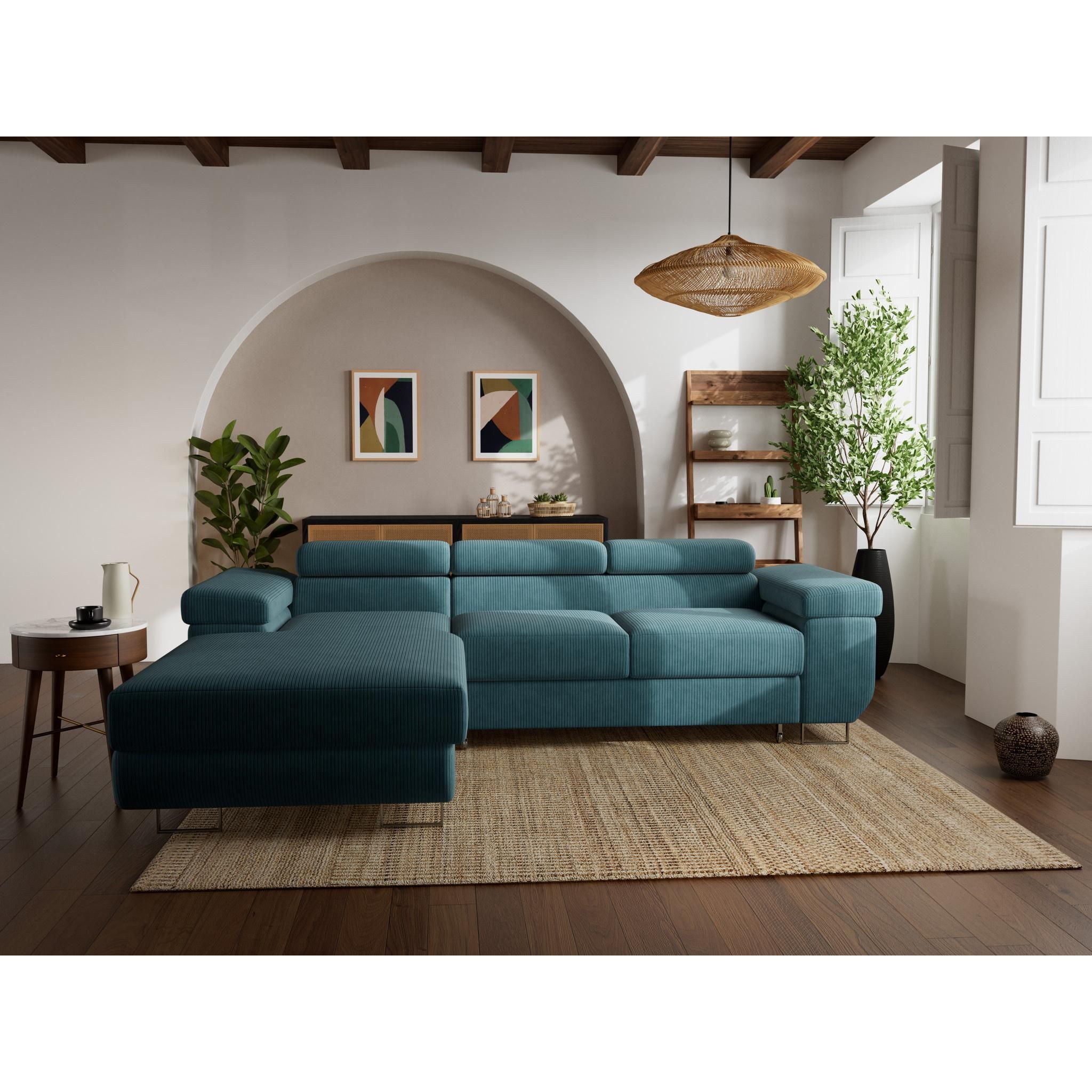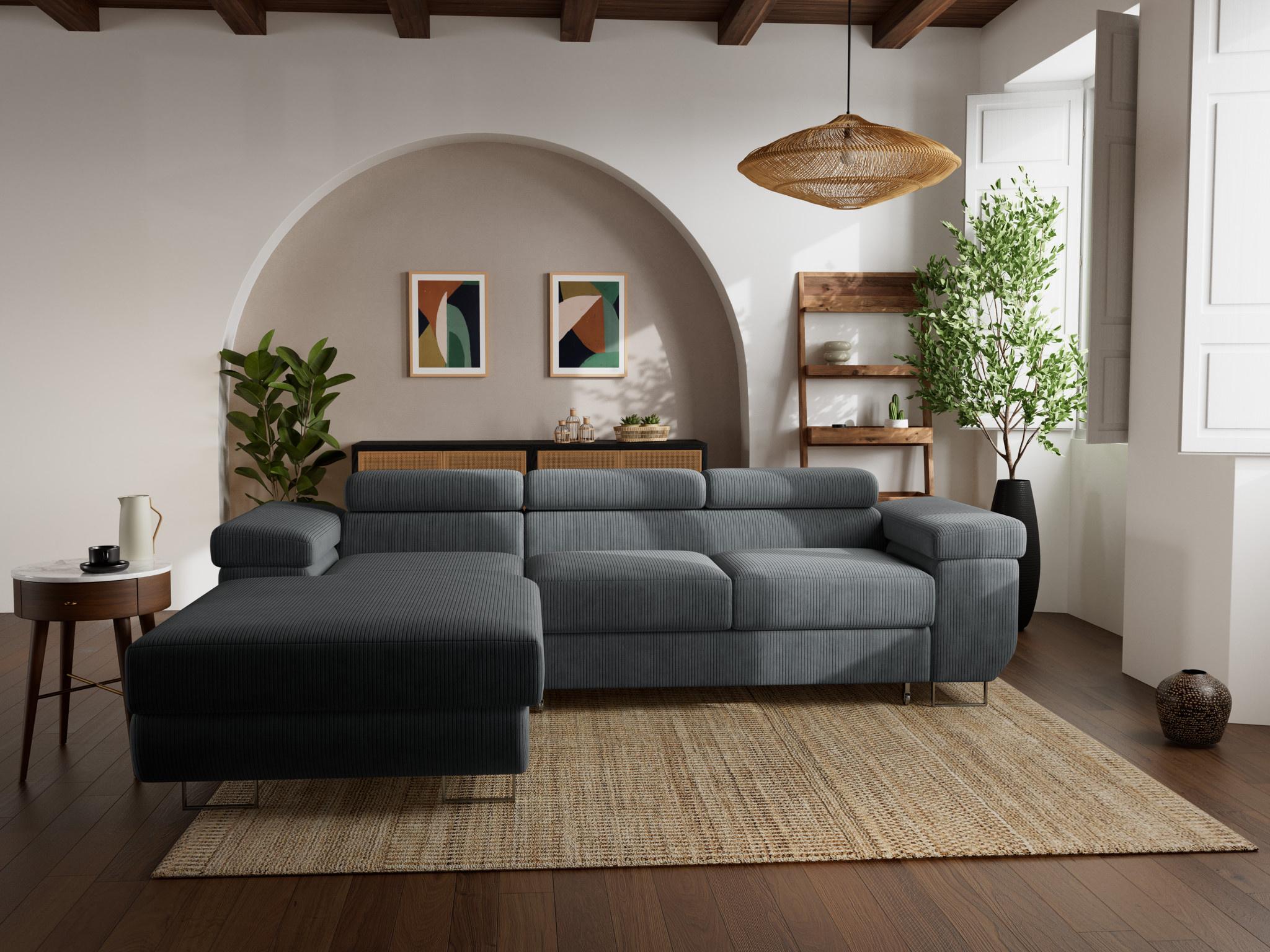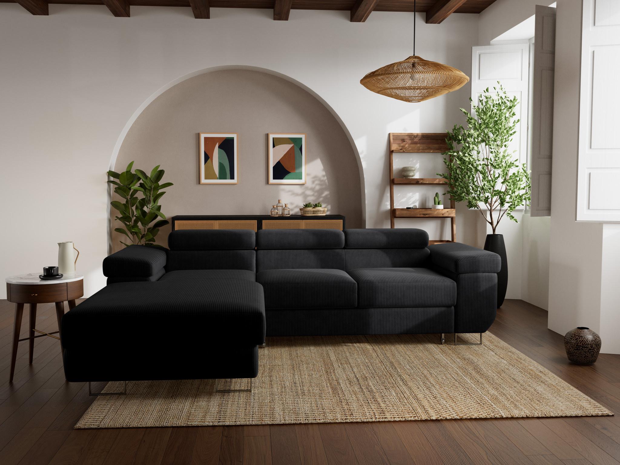 Pablo - canapé d'angle gauche - 6 places - convertible avec coffre et têtières réglables - en velours côtelé