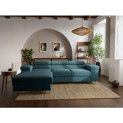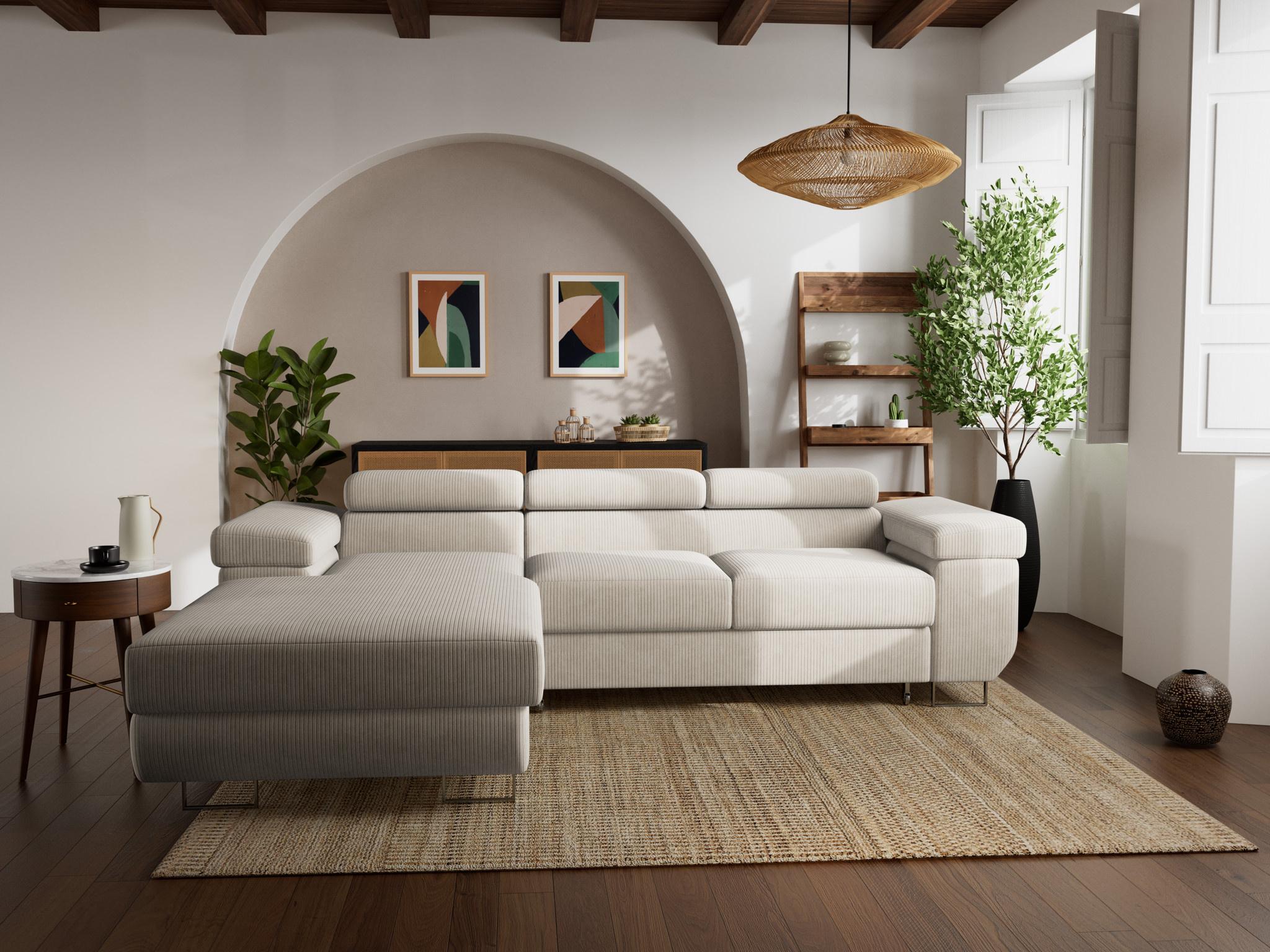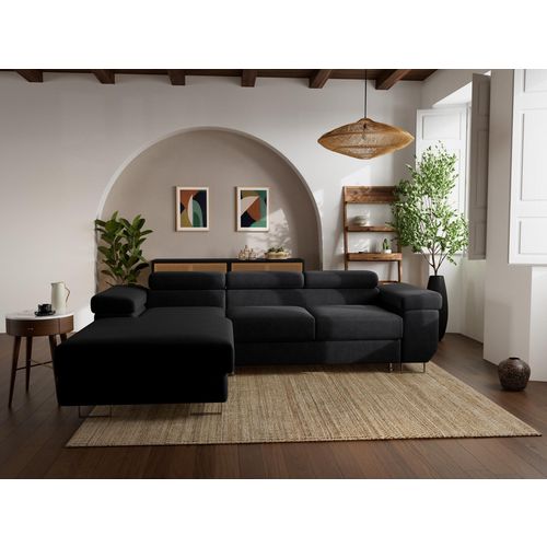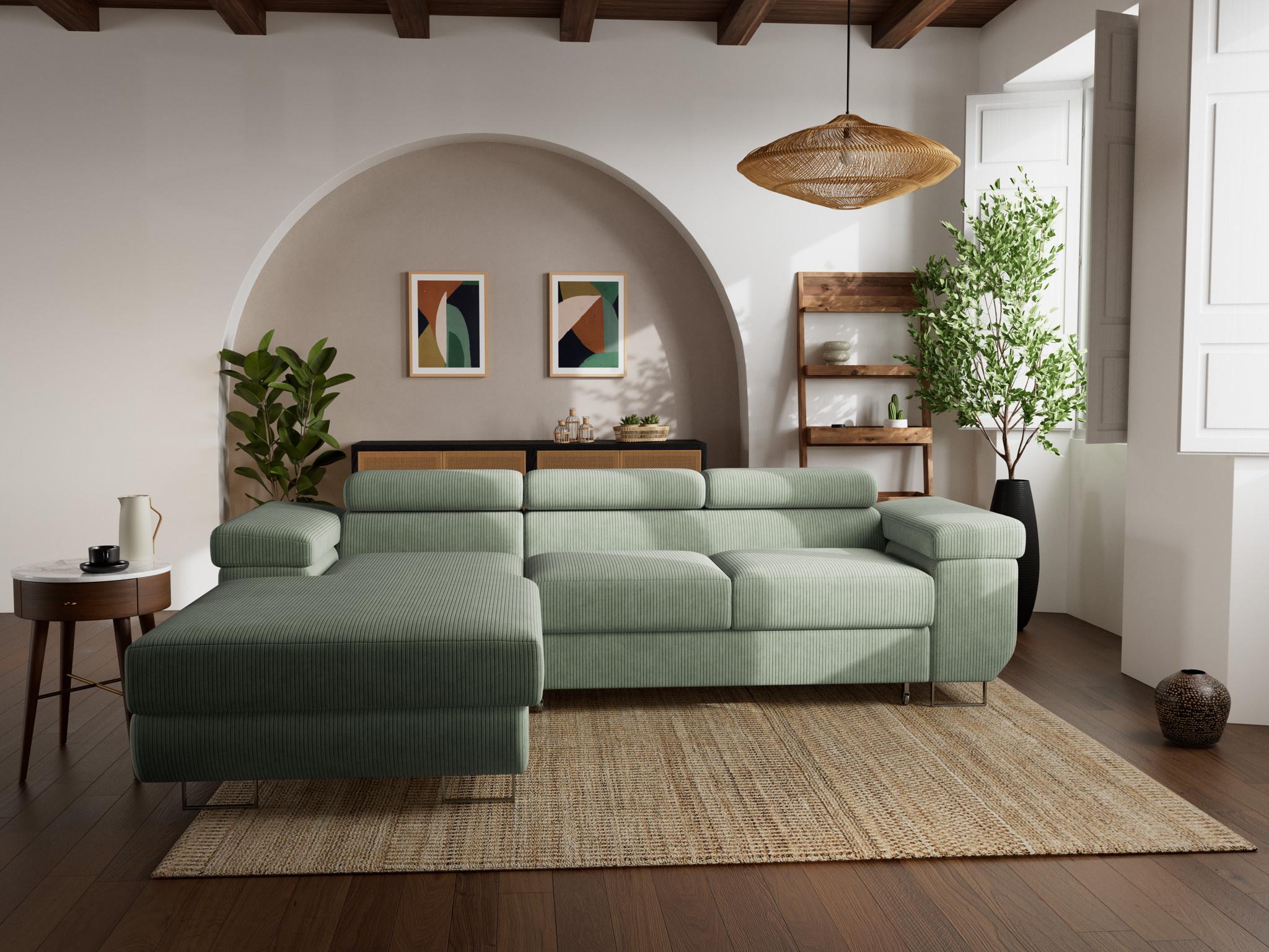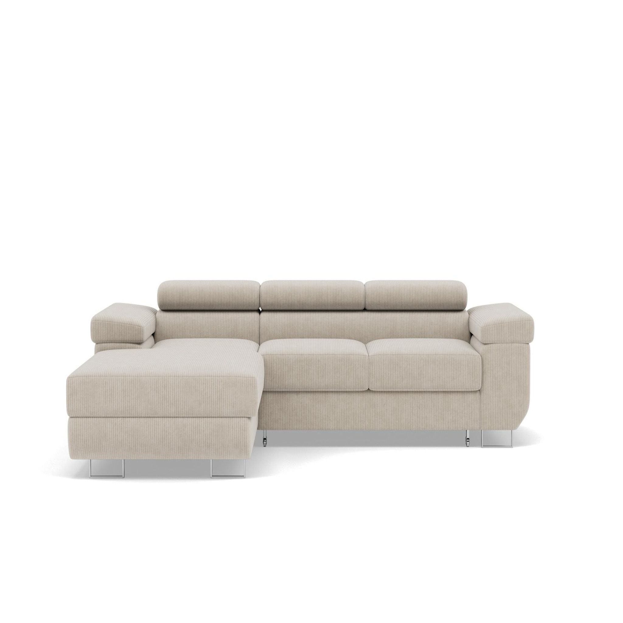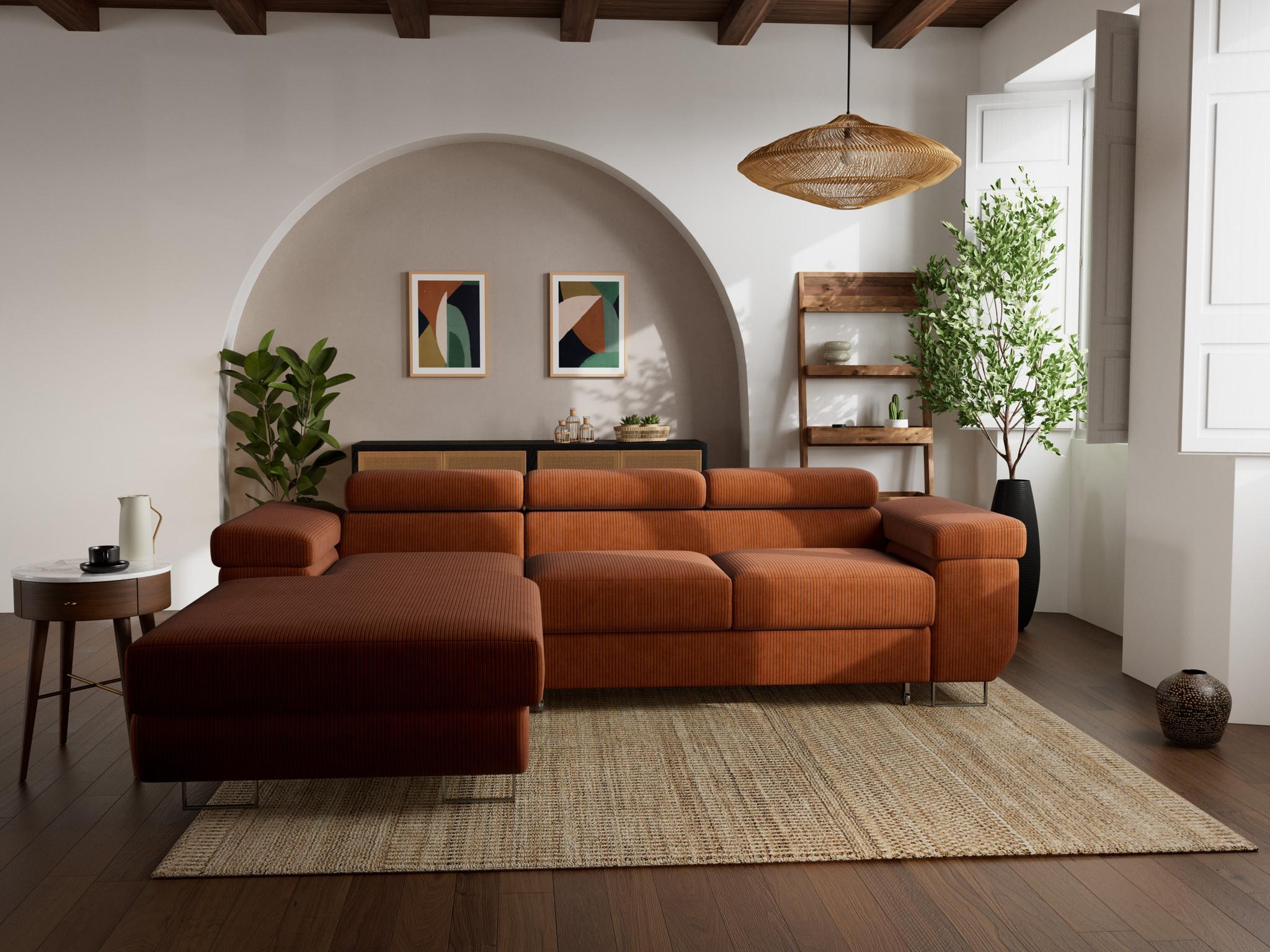 Pablo - canapé d'angle gauche - 6 places - convertible avec coffre et têtières réglables - en velours côtelé
