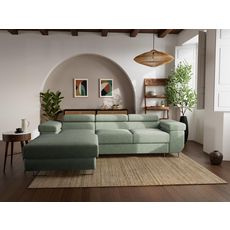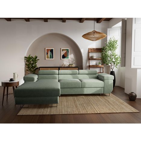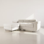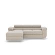 Le canapé d'angle Pablo est à la fois esthétique et pratique. En effet, ce canapé vous propose des appuie-têtes réglables que vous pouvez ajuster afin de mieux vous relaxer. De plus, étant convertible, il peut être déplié pour obtenir une large surface de couchage pouvant accueillir deux personnes, idéale pour un usage occasionnel. Enfin, le coffre de rangement situé sous sa méridienne vous permettra de stocker aisément vos plaids et coussins.