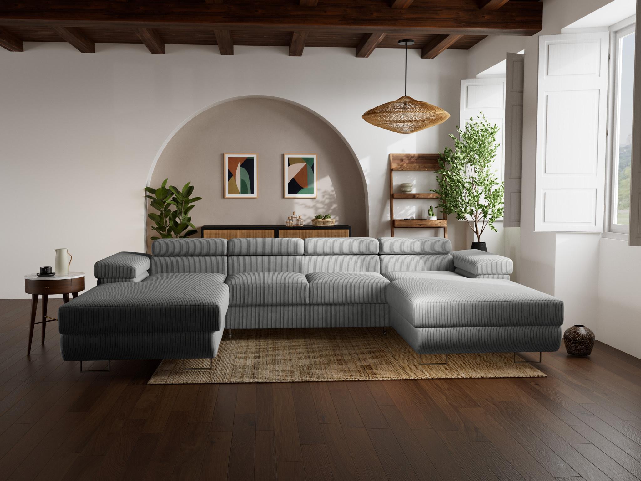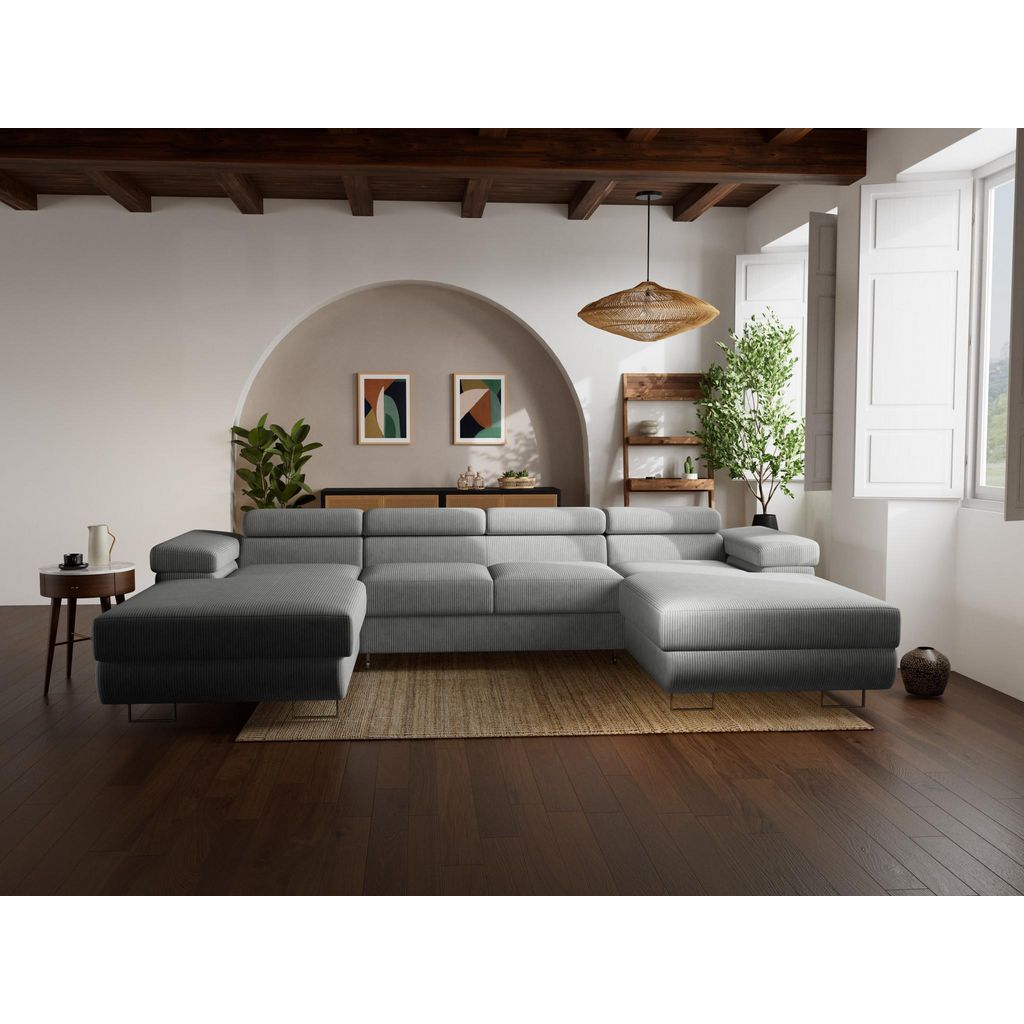Pablo - canapé panoramique en u - 7 places - convertible avec coffres et têtières réglables - en velours côtelé