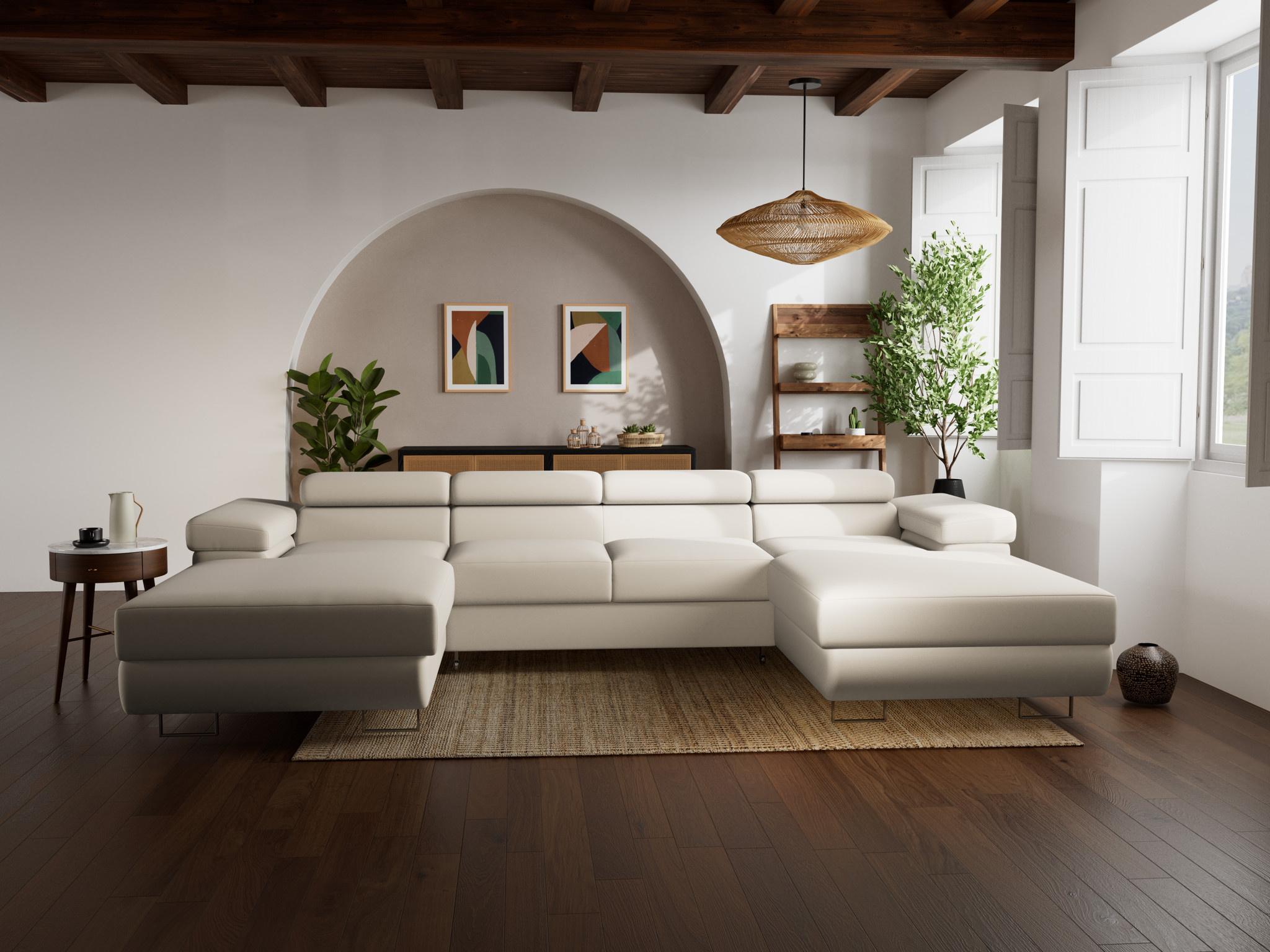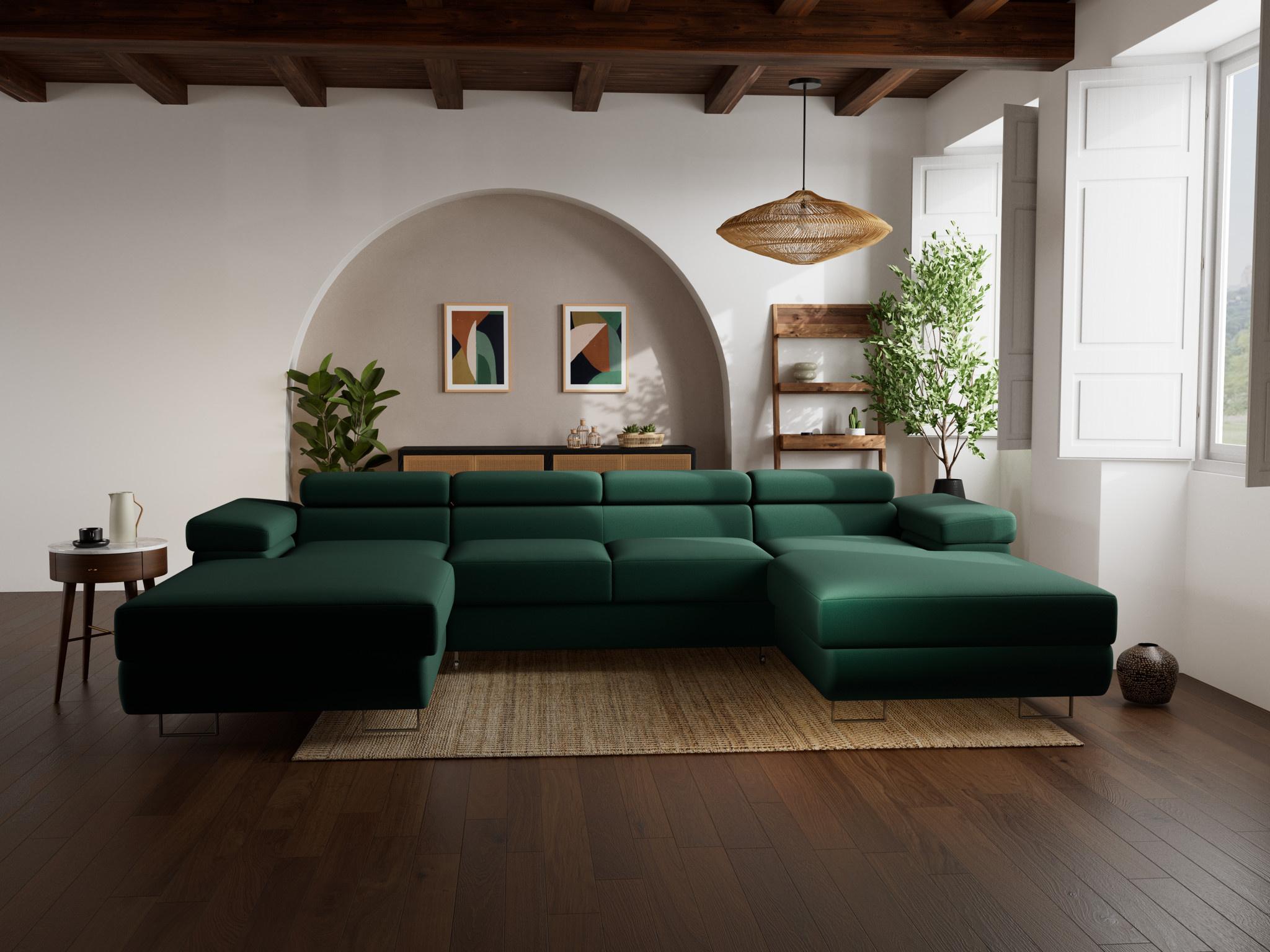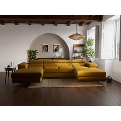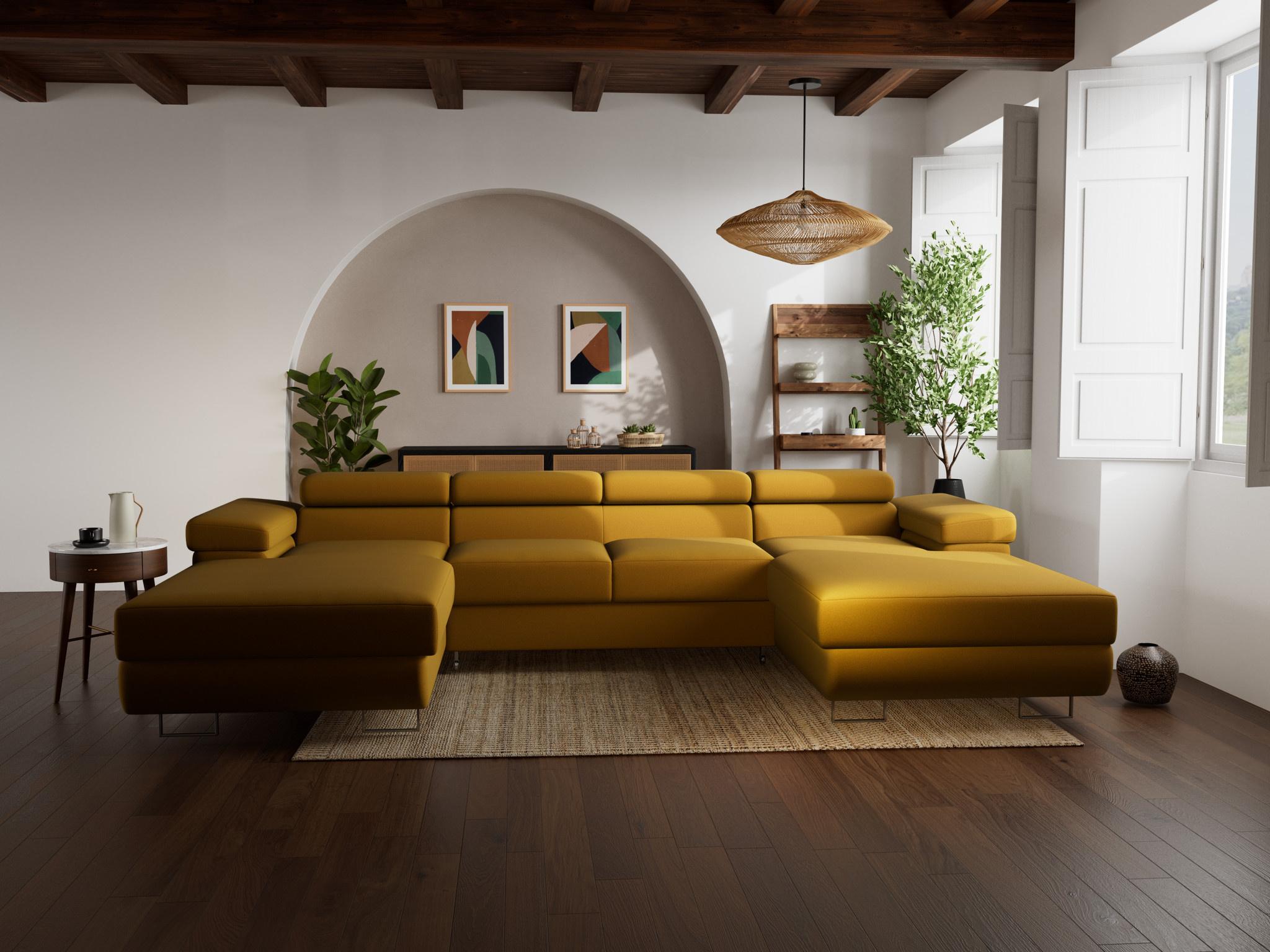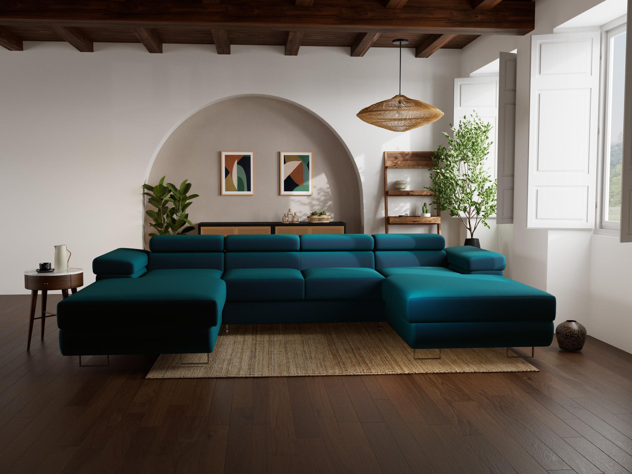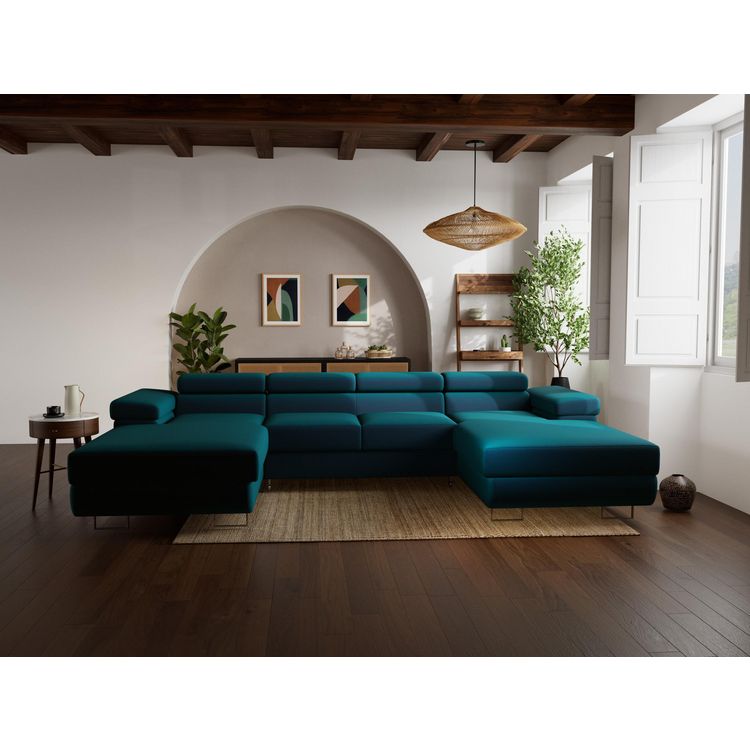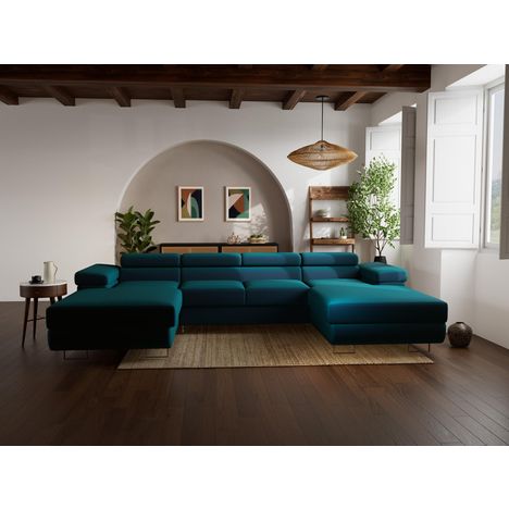 Pablo - canapé panoramique en u - 7 places - convertible avec coffres et têtières réglables - en velours