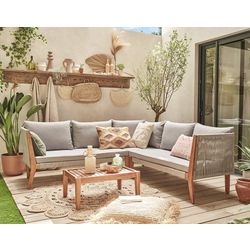 Papua - salon bas de jardin 5 places - bois, corde et coussins gris