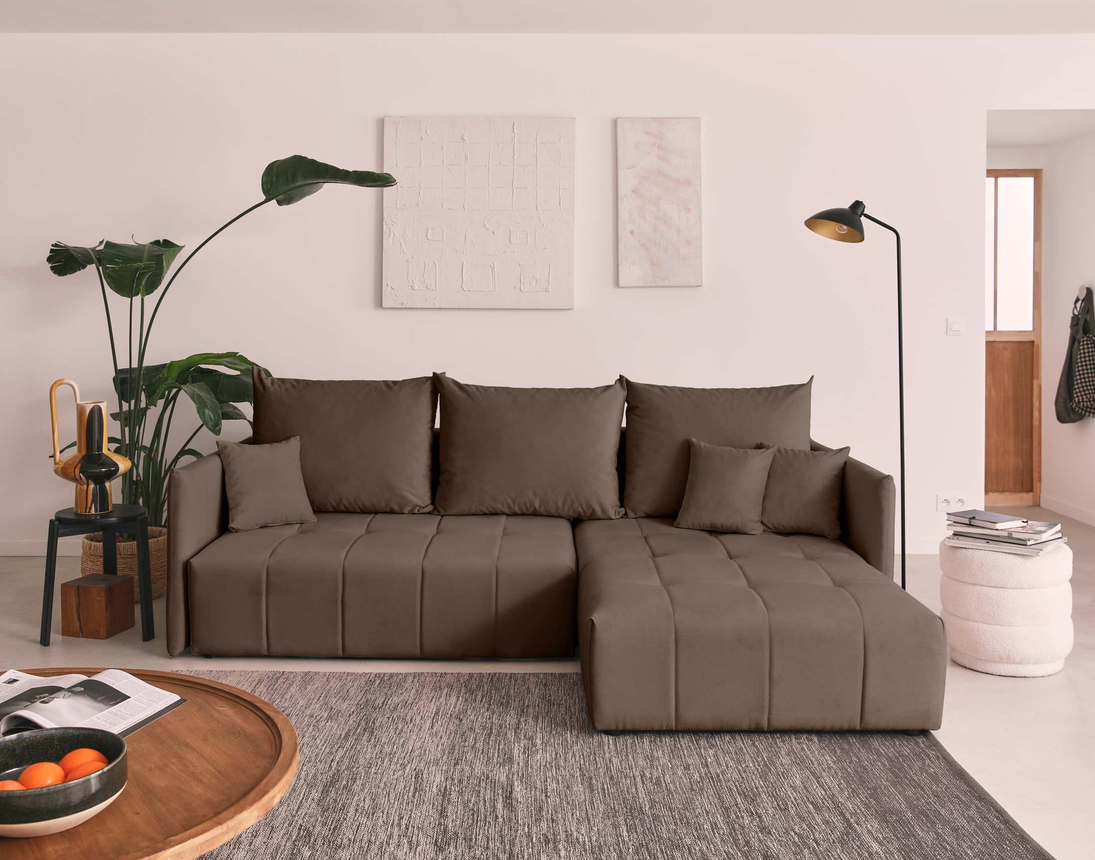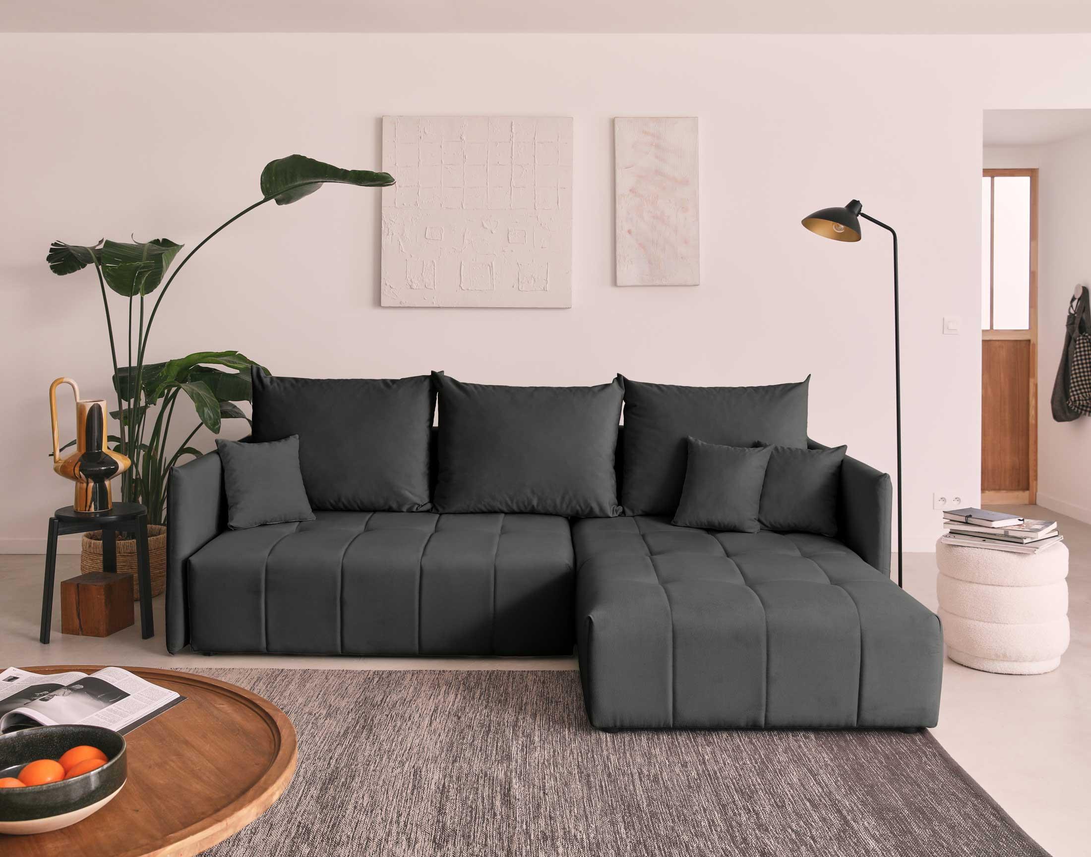 Petra - canapé d'angle réversible - convertible avec coffre - 4 places - en velours