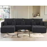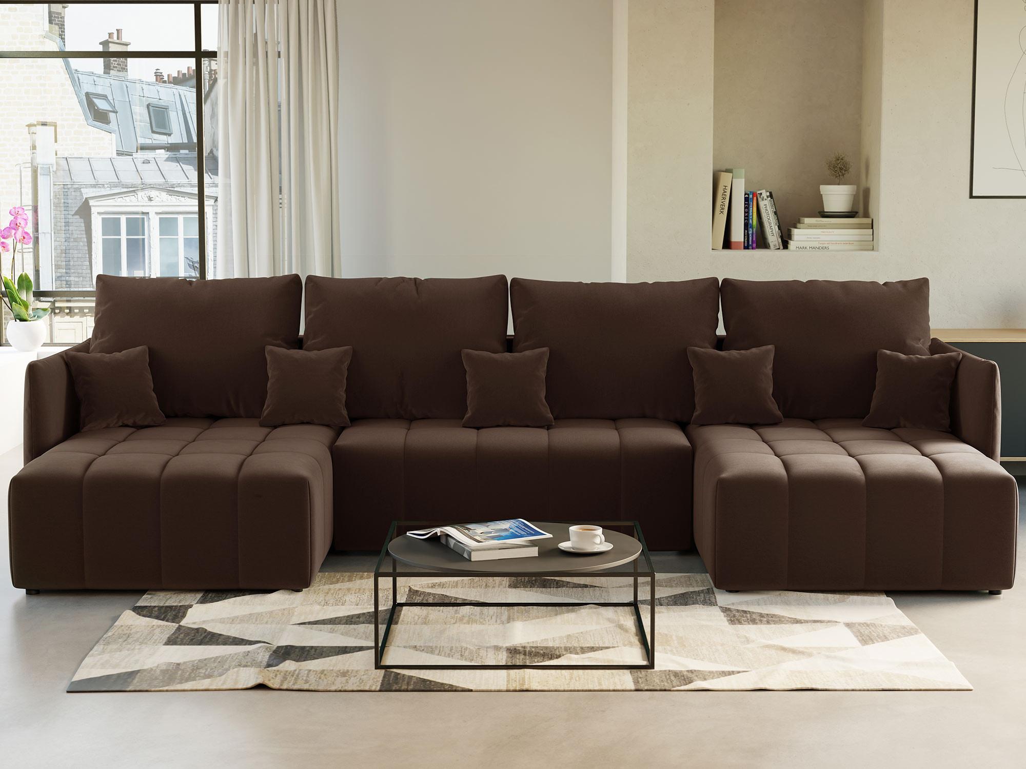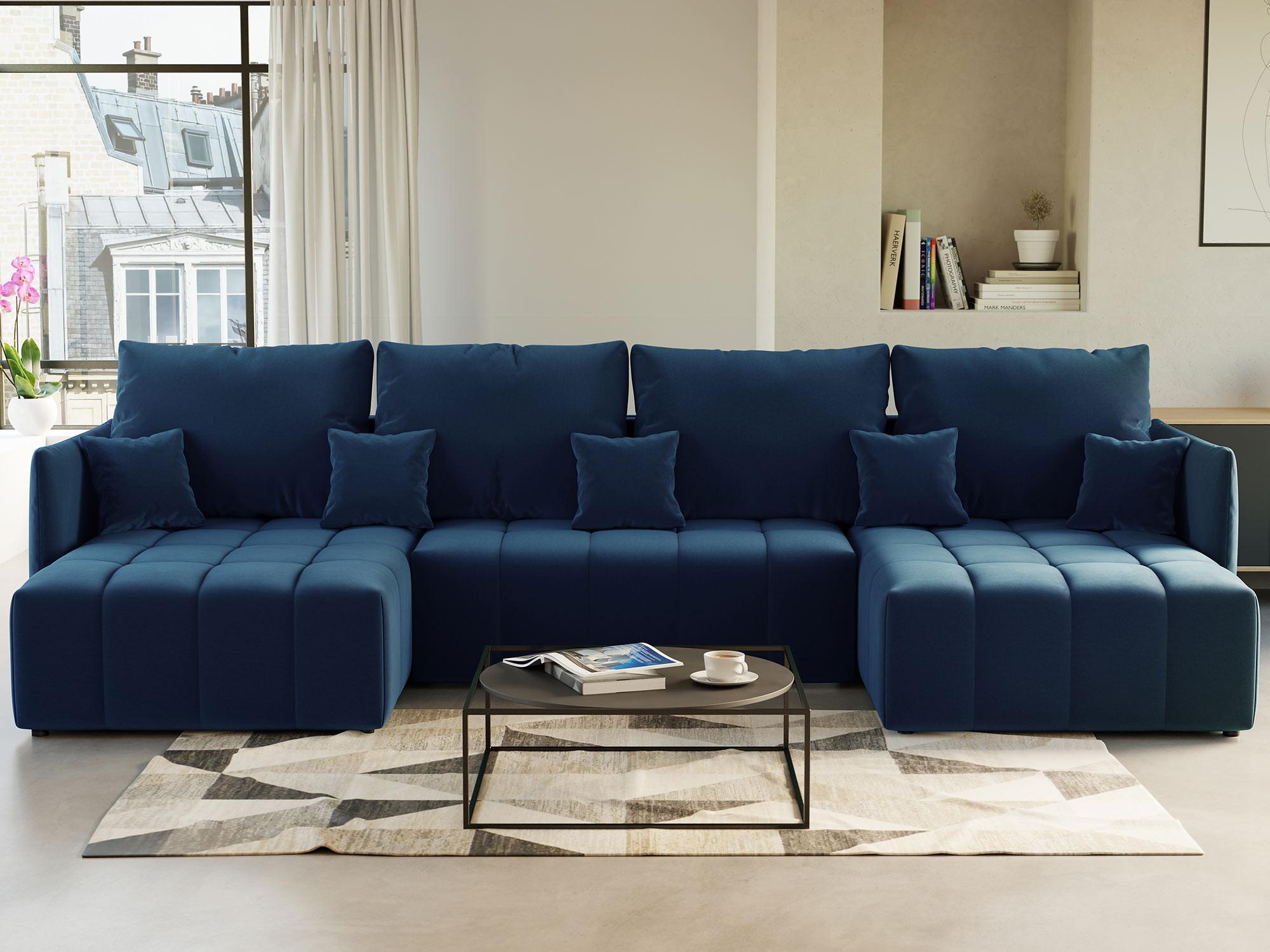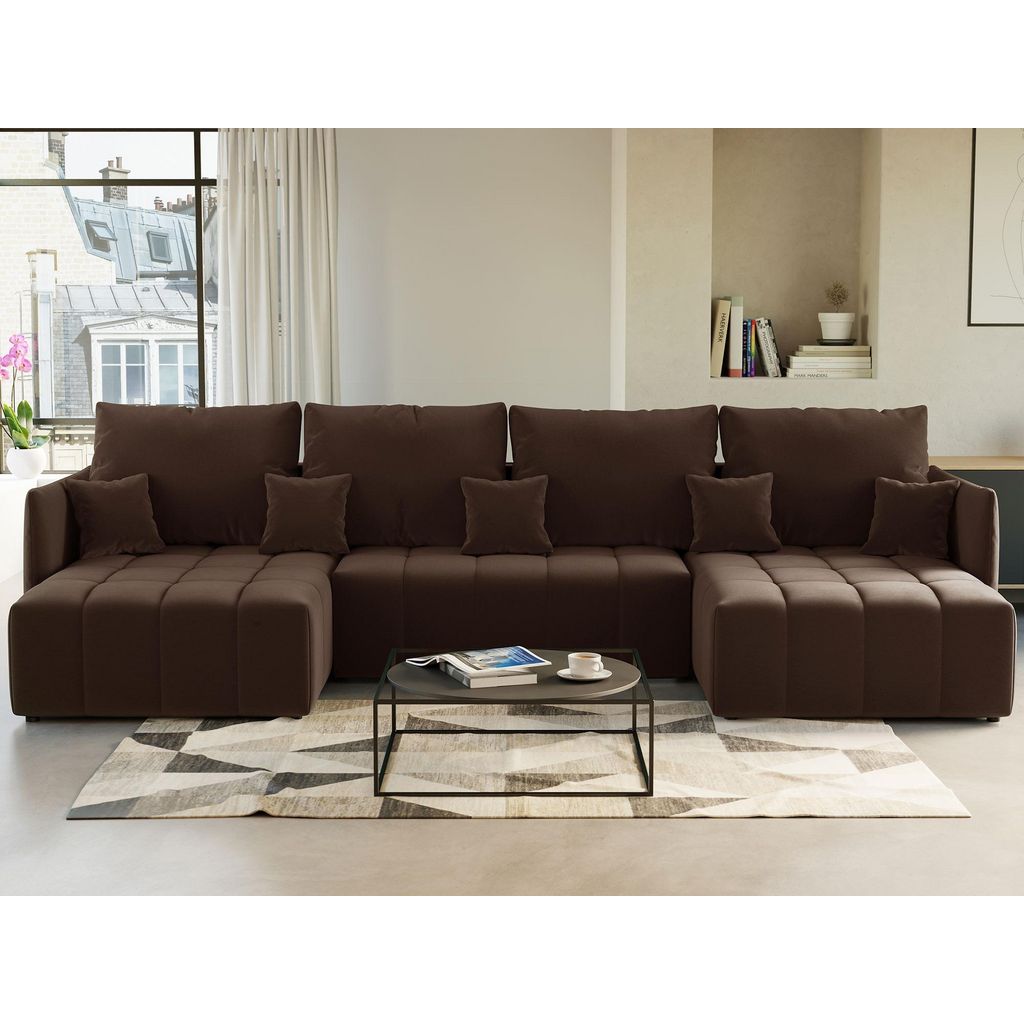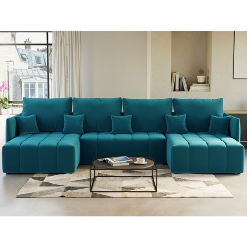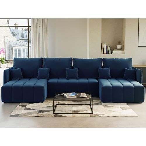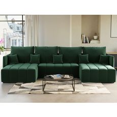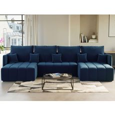 Petra - canapé panoramique en u - 7 places - convertible - avec coffre - en velours