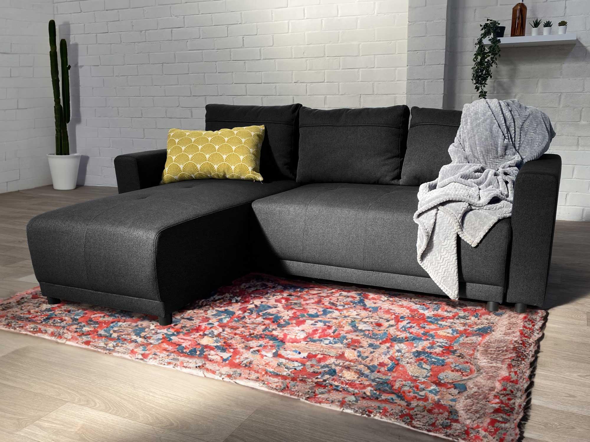 Pilea - canapé d'angle réversible 4 places - convertible avec coffre - en tissu