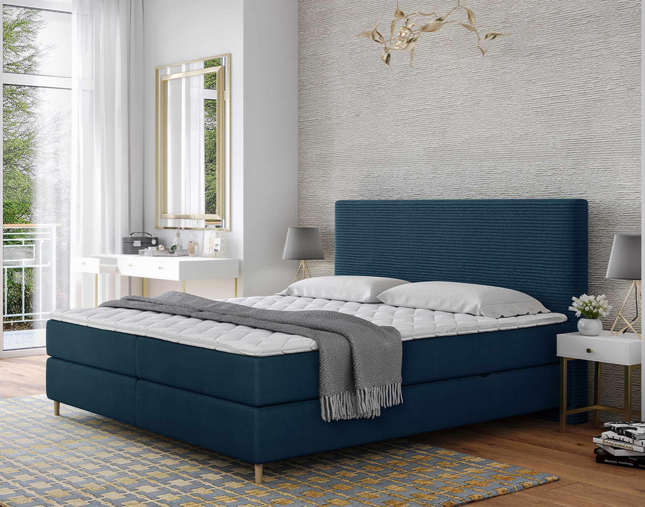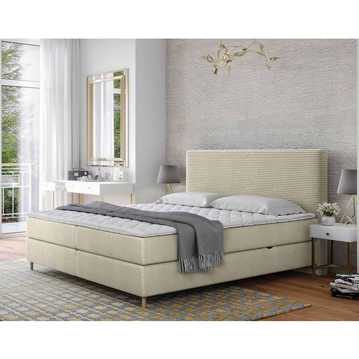 Vous êtes à la recherche d'un lit confortable, pratique et élégant ? Dans ce cas, le lit boxspring Rafaela 160x200 cm est votre idéal ! Ce lit double habillera votre chambre grâce à sa structure et sa tête de lit en velours côtelé généreusement rembourrées. Il est aussi réhaussé par des pieds en bois.