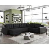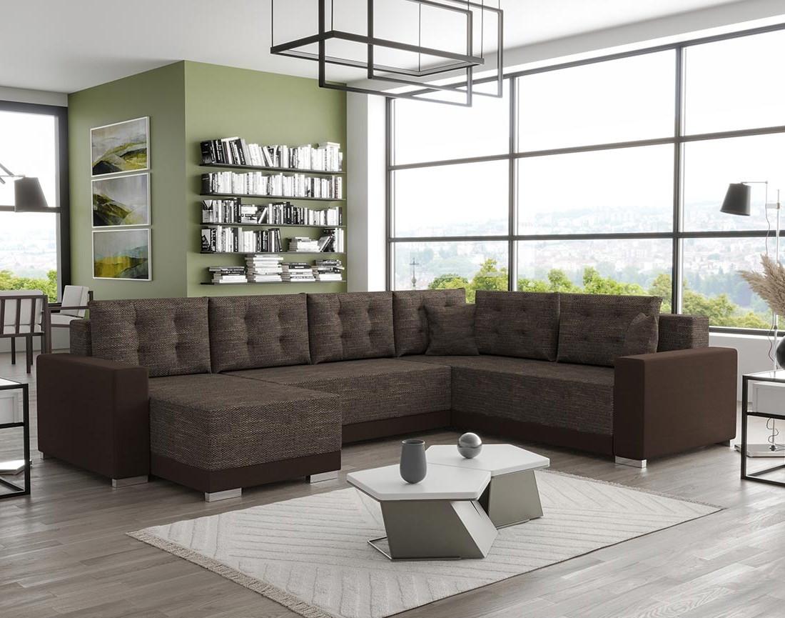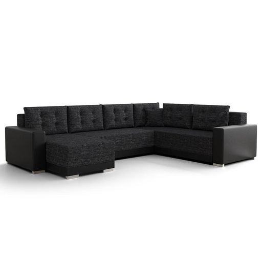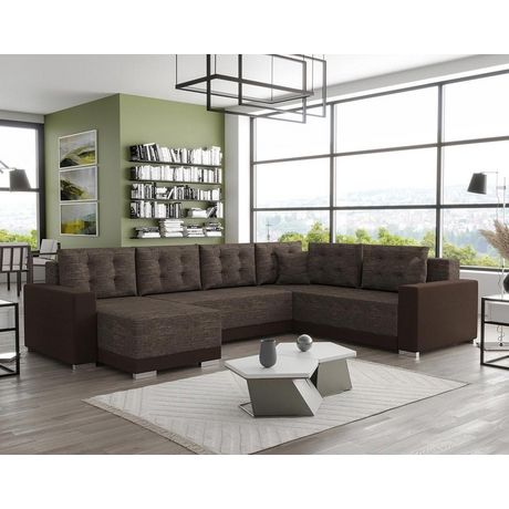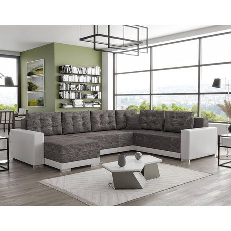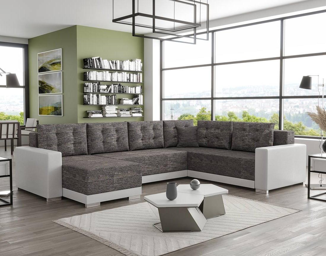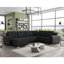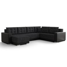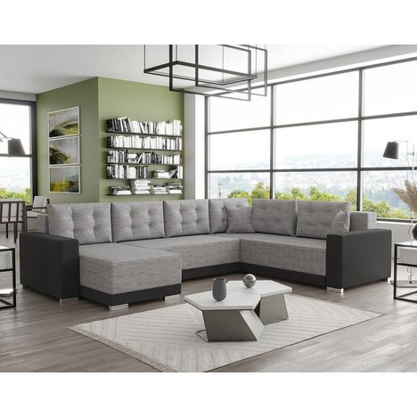 Roger - canapé panoramique d'angle réversible 7 places convertible avec coffre en tissu