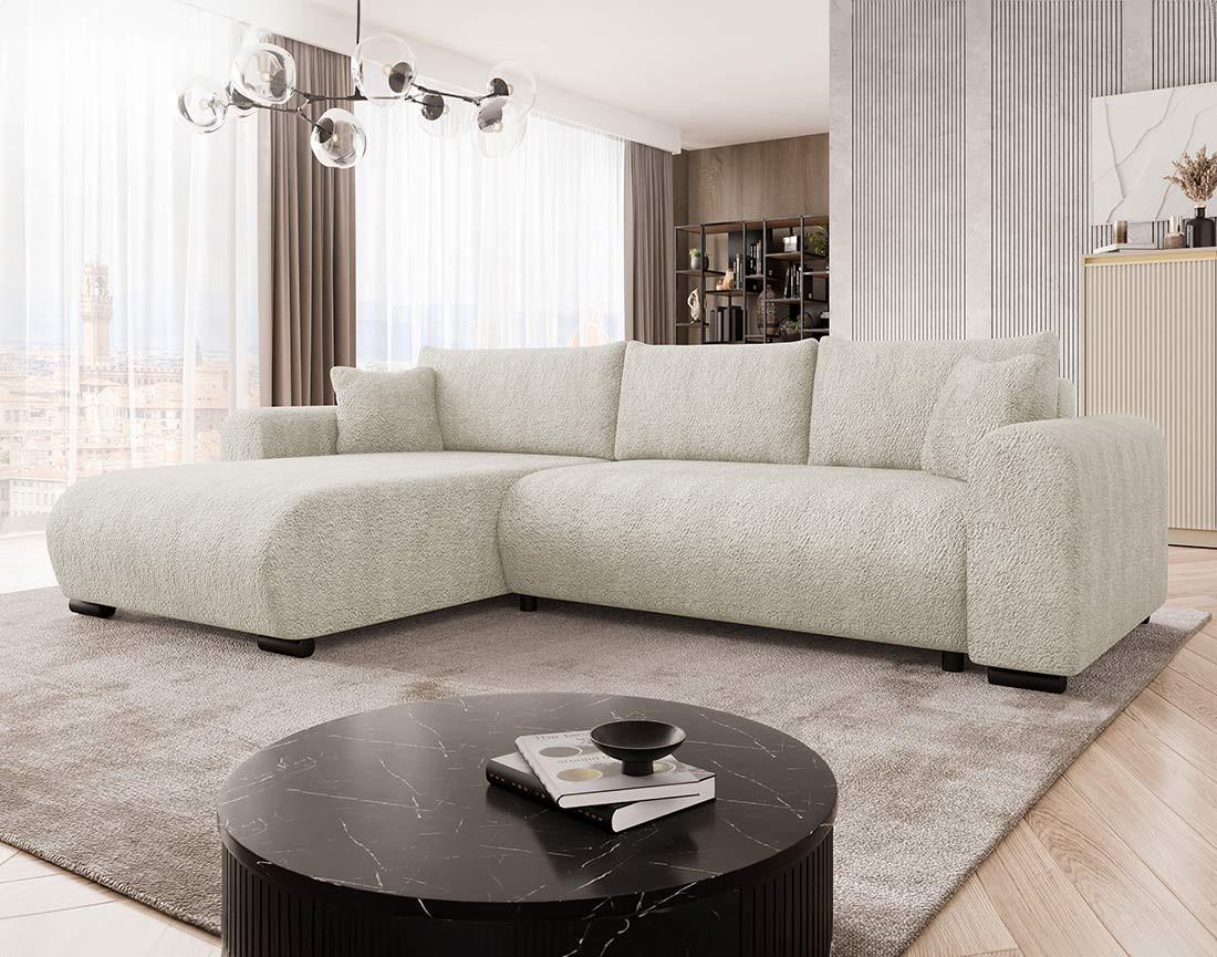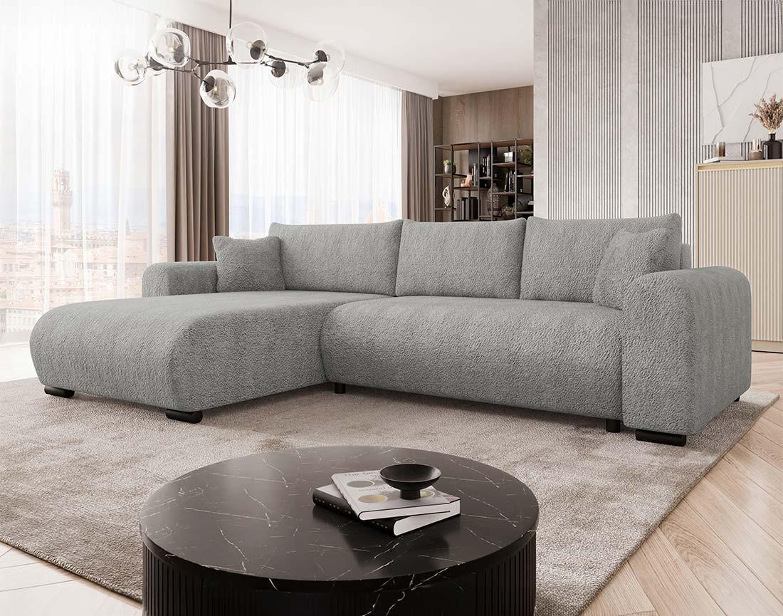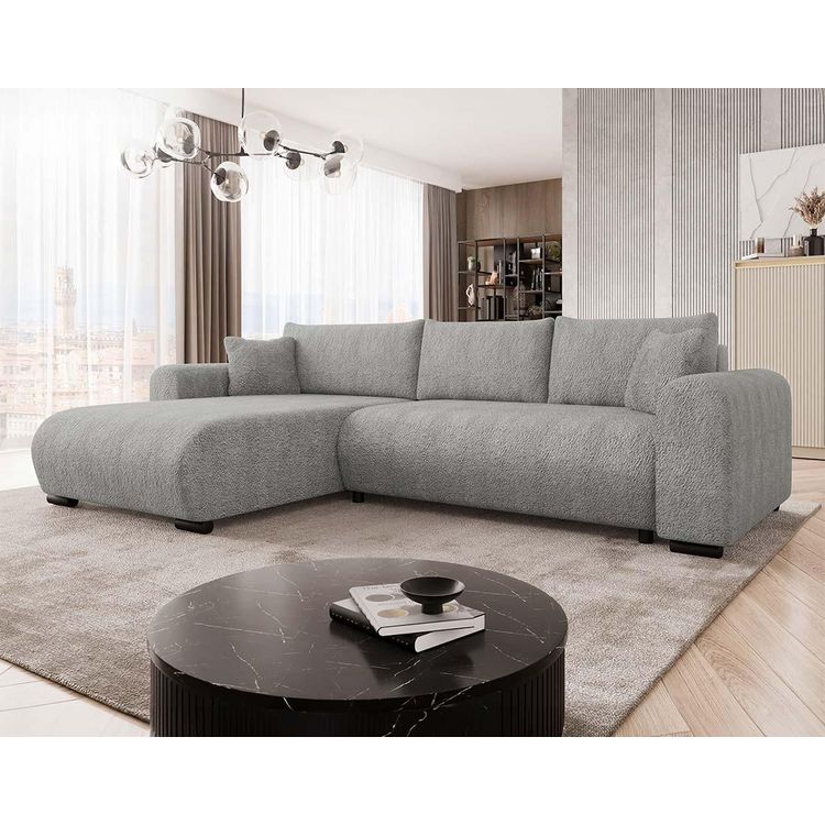 Rosalie - canapé d'angle réversible 4 places convertible avec coffre en tissu bouclette