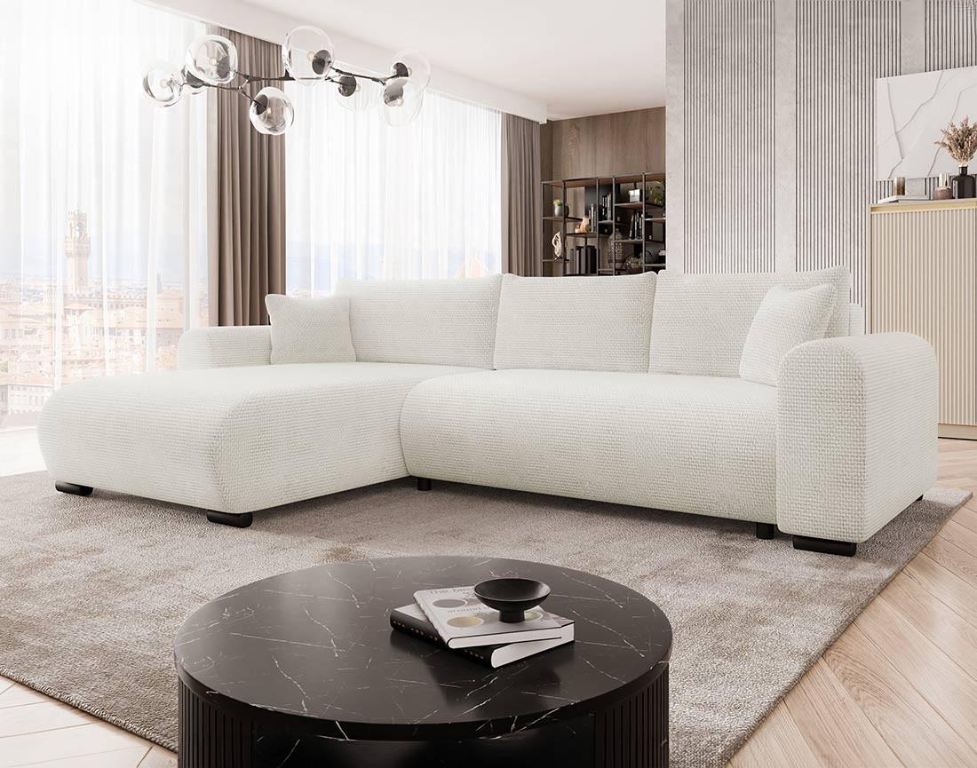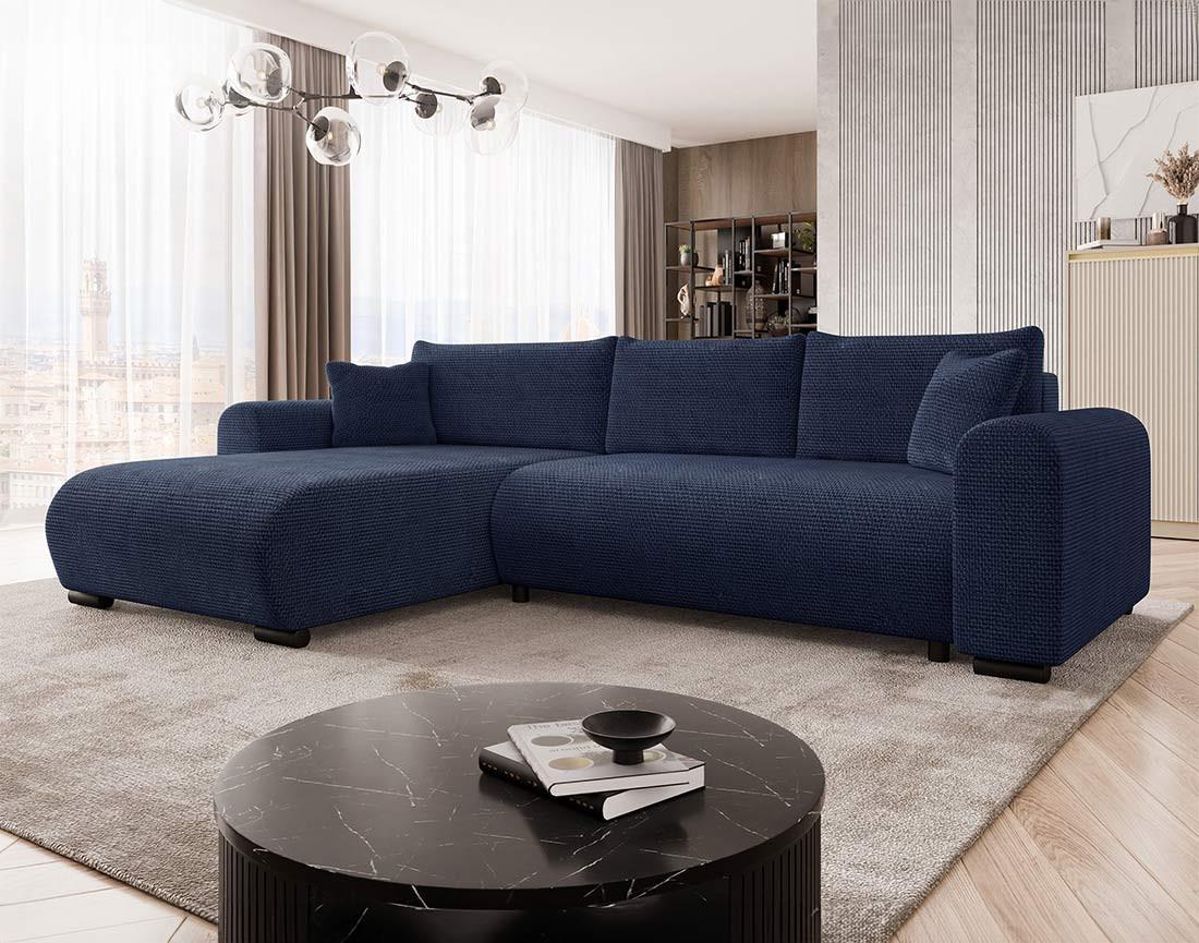 Rosalie - canapé d'angle réversible 4 places convertible avec coffre en velours texturé