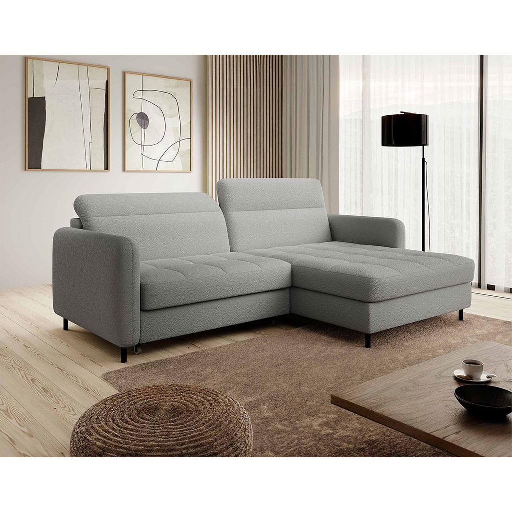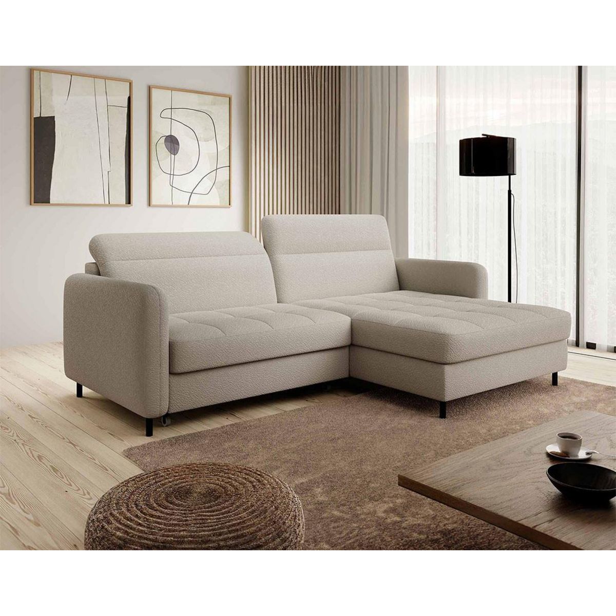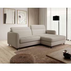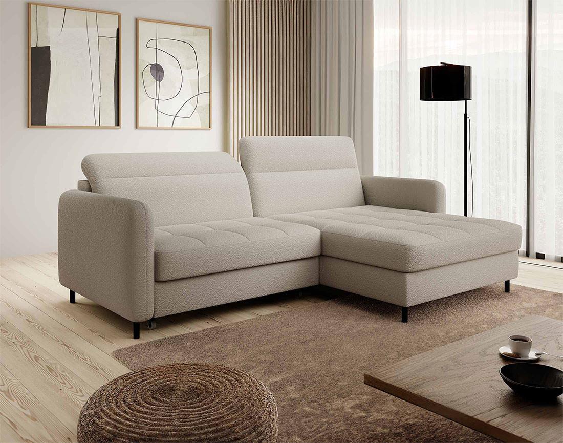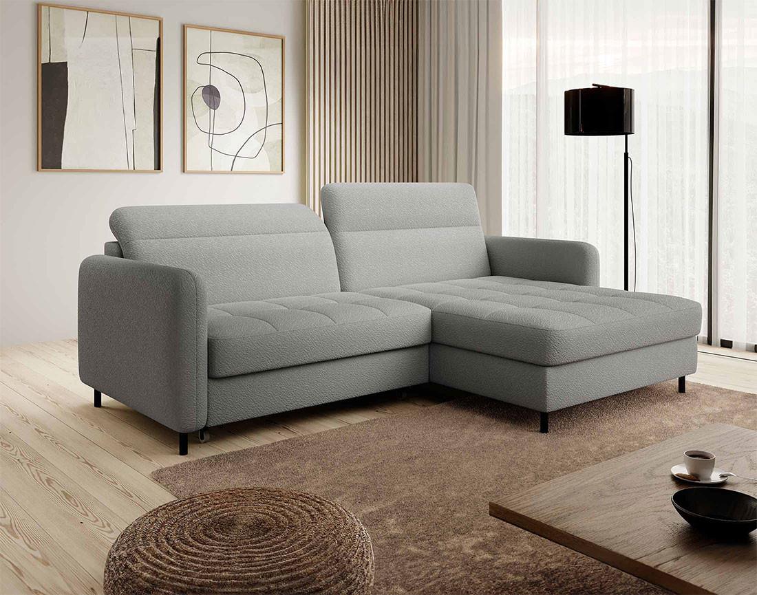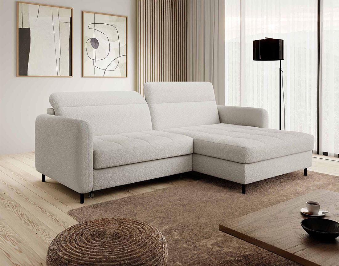 Sagada - canapé d'angle droit 4 places - convertible avec coffre et têtières - en tissu bouclette