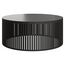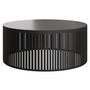 La table basse noire Sally se distingue par sa forme ronde, un choix tendance qui ajoute une touche de sophistication à votre intérieur. Les lignes épurées et les courbes douces de cette table se marient parfaitement avec les tasseaux de bois design, créant un contraste visuel saisissant entre le noir élégant et les éléments en bois naturel. Ce mélange de matériaux et de formes en fait une pièce centrale raffinée et contemporaine pour tout espace de vie.
