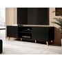 Disponible en coloris blanc avec des pieds noirs ou en coloris noir avec des pieds dorés, ce meuble TV moderne embellira votre intérieur.