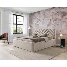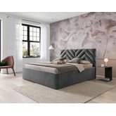 Métamorphosez votre chambre avec le lit coffre 140x200 cm Santiago. Ce lit 2 places deviendra l'élément central de votre pièce et vous séduira grâce à sa haute tête de lit aux motifs géométriques et son revêtement en velours.