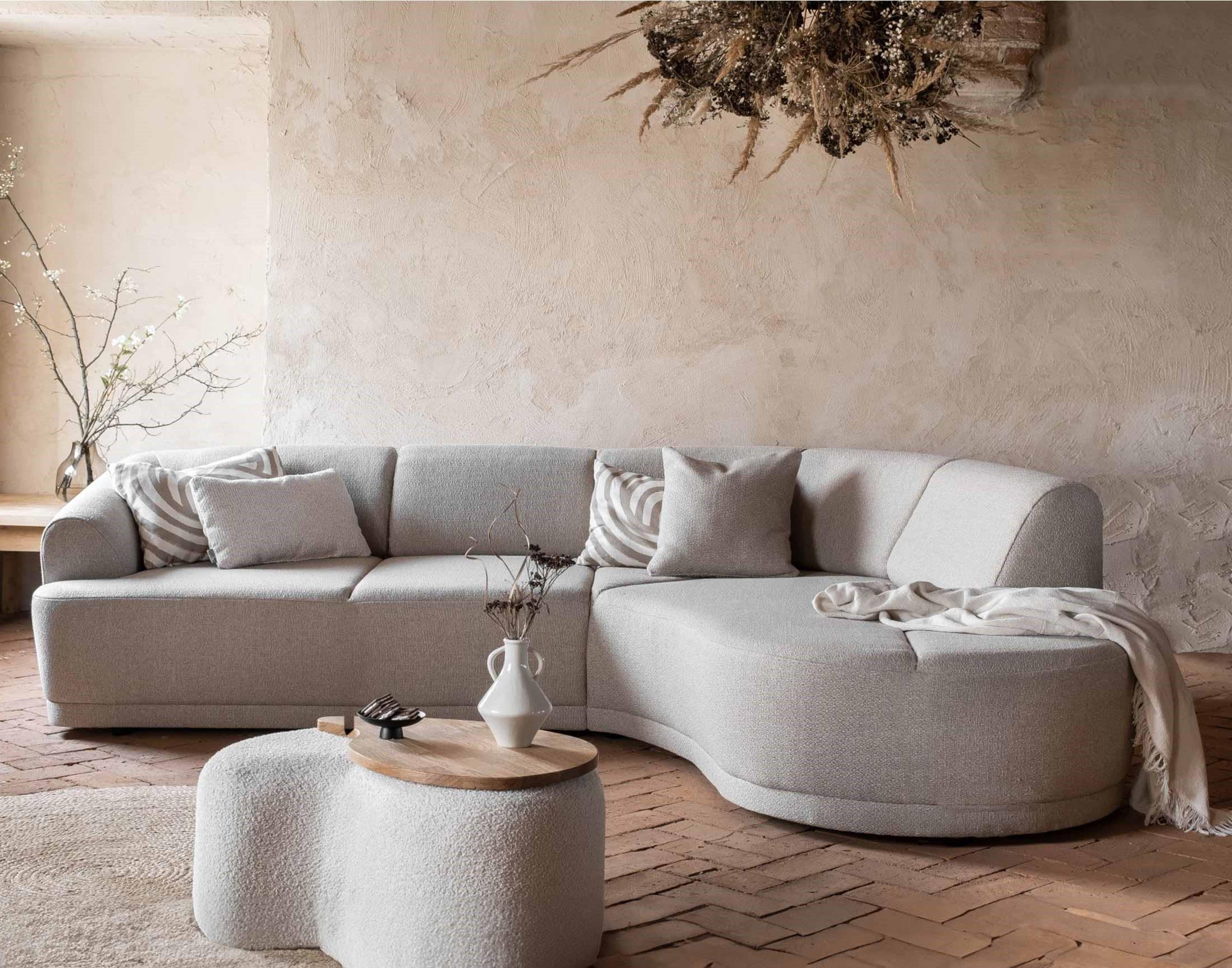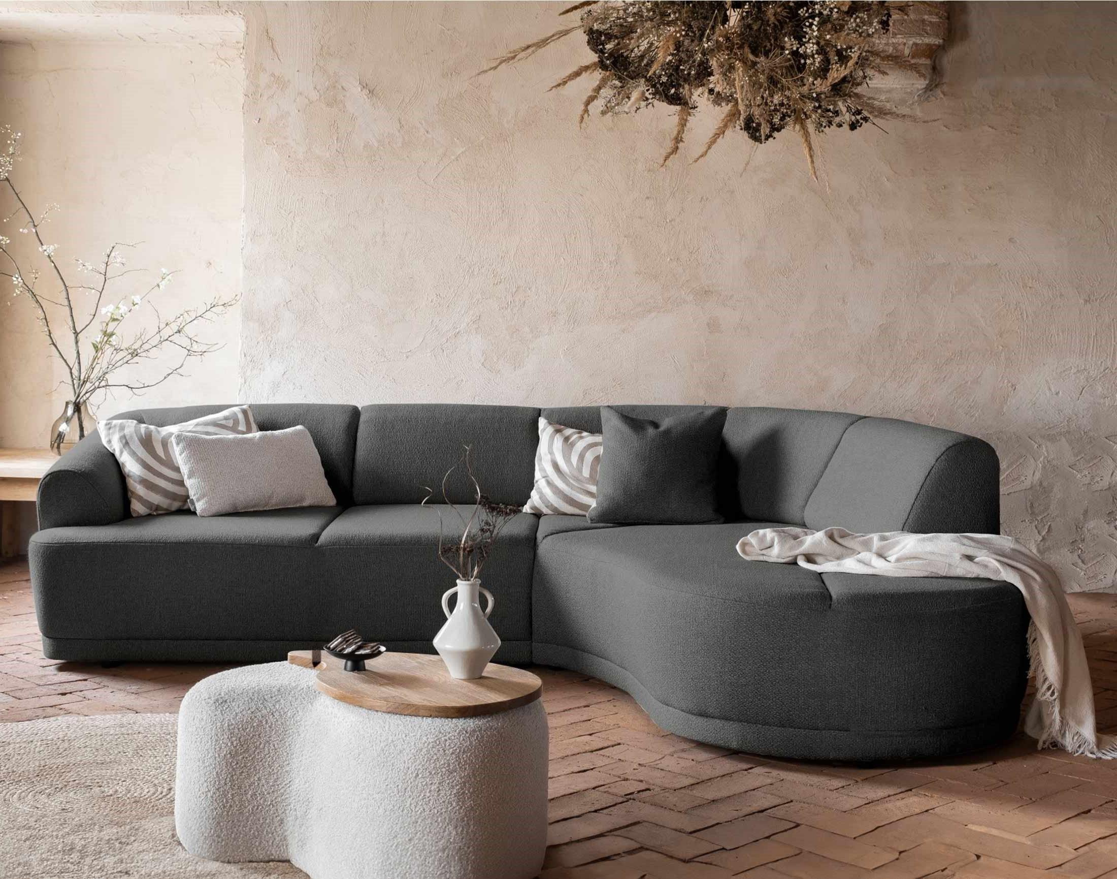 Disponible en quatre coloris, le canapé d'angle Siena à la silhouette organique s'installera parfaitement dans votre salon.