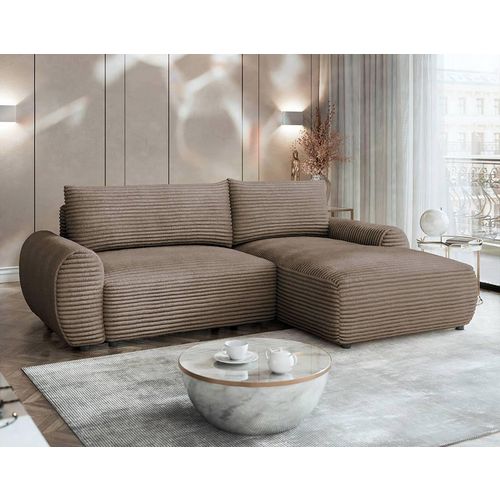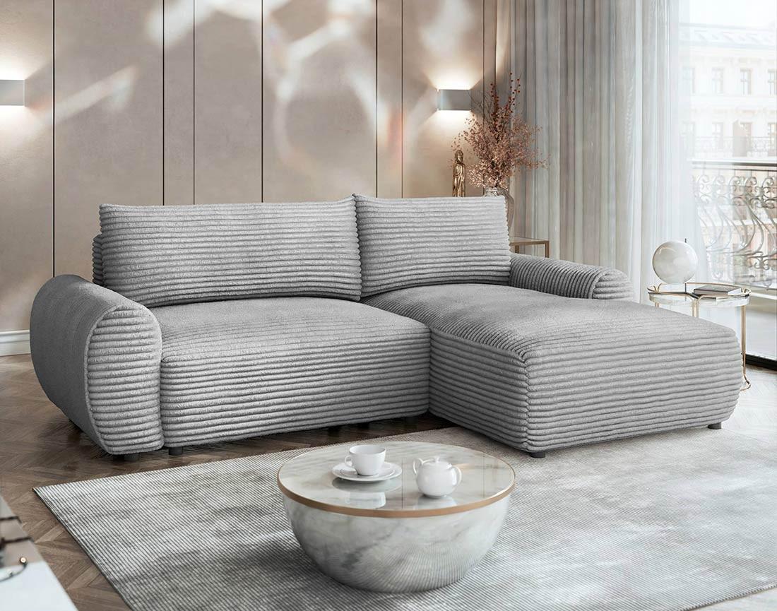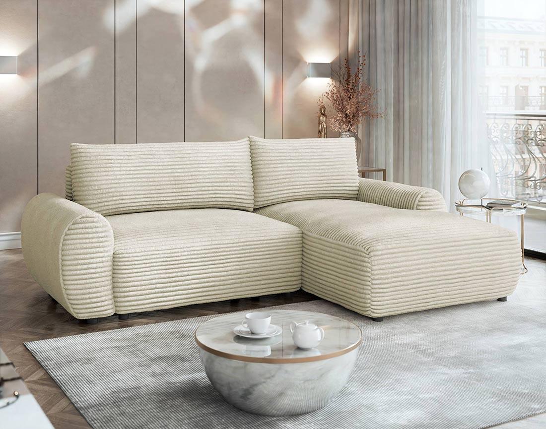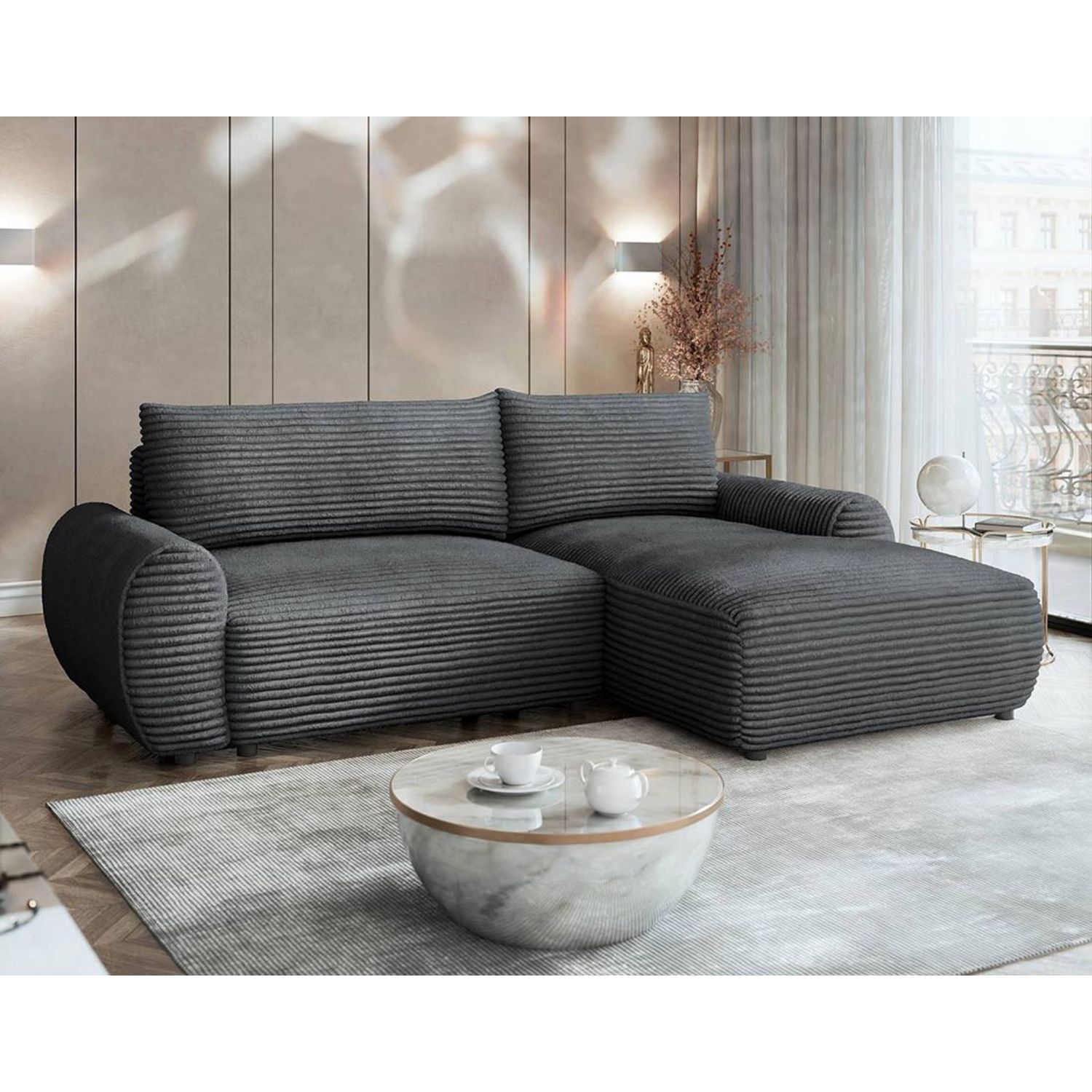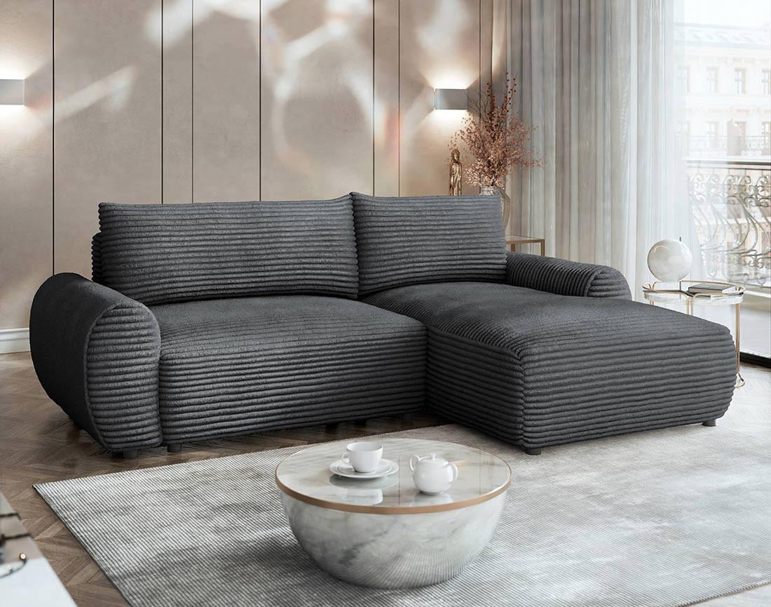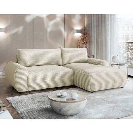 Silvano - canapé d'angle droit 4 places convertible avec coffre en velours côtelé grosses côtes